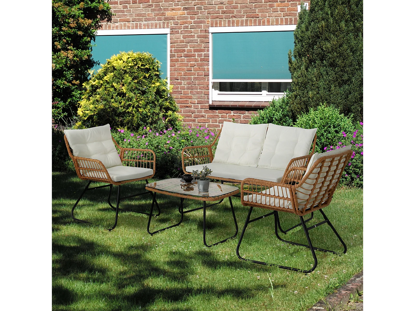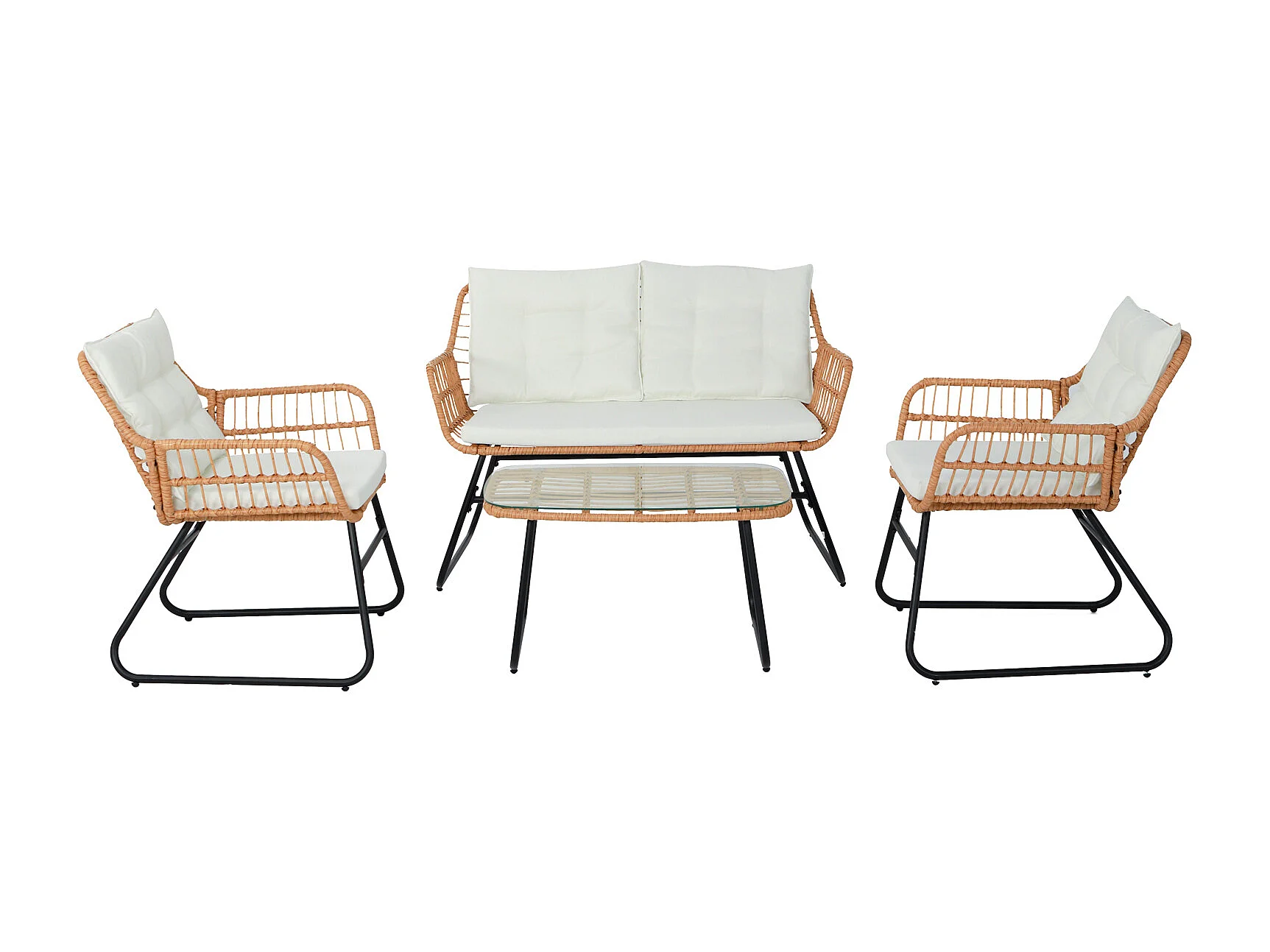 Ensemble de meubles de balcon SVITA CAPRI en polyrotin pour l'extérieur, 4 pièces Salon de jardin Natur