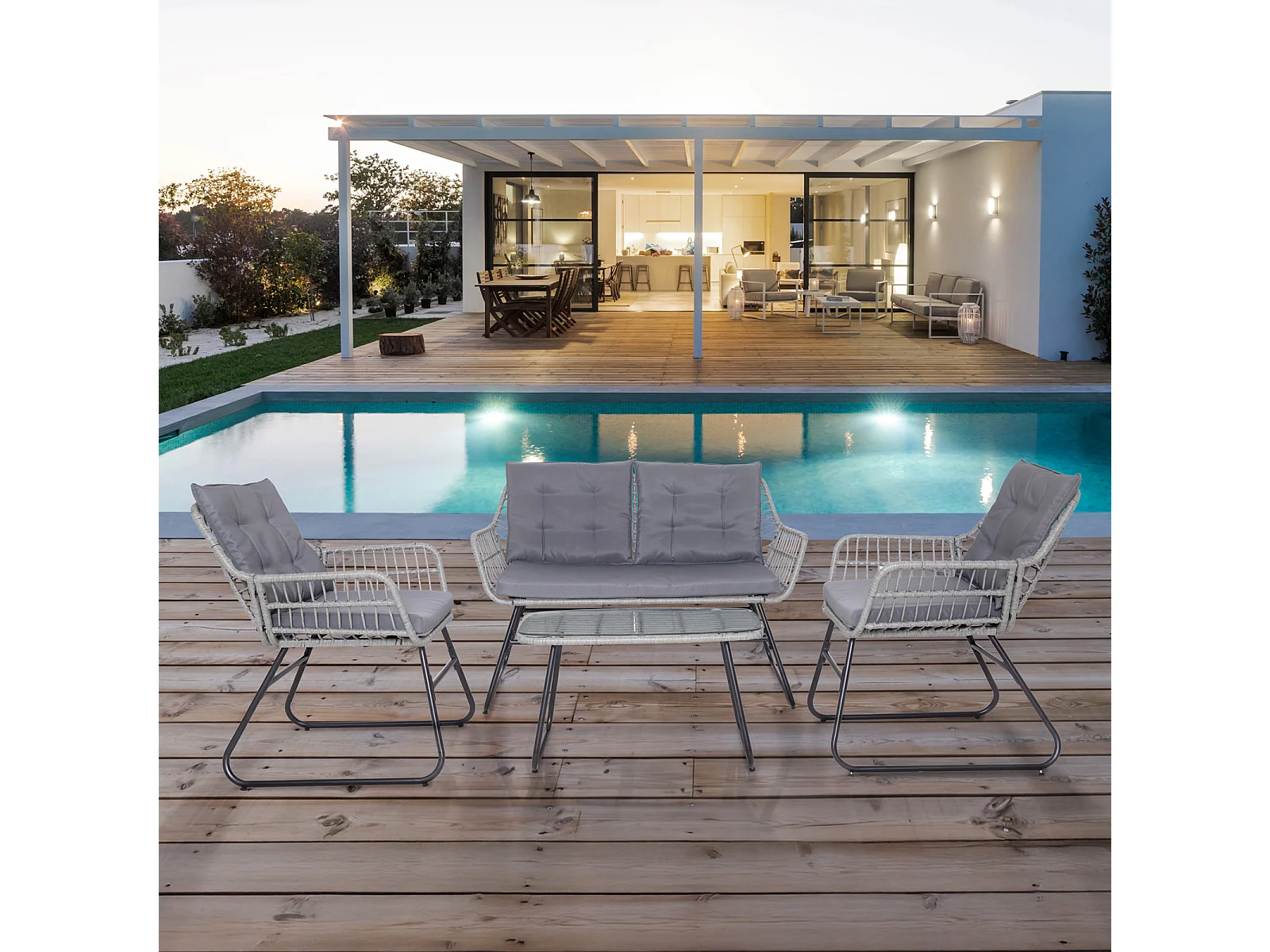 Ensemble de meubles de balcon SVITA CAPRI en polyrotin pour l'extérieur, 4 pièces Salon de jardin gris clair