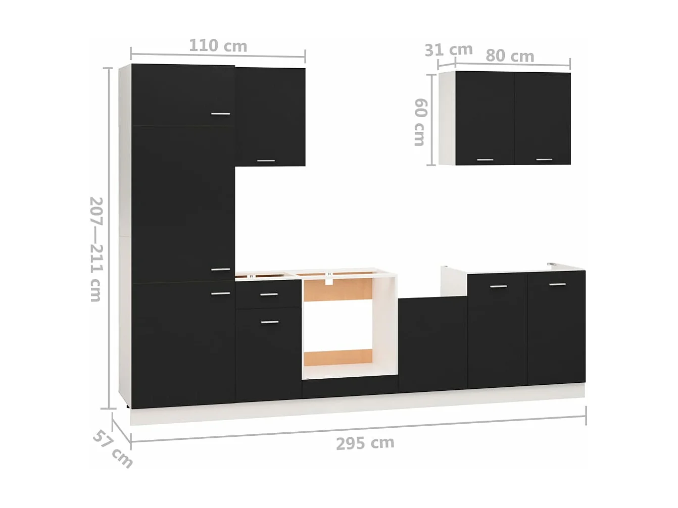 Ensemble de meubles de cuisine 7 pcs Noir Aggloméré