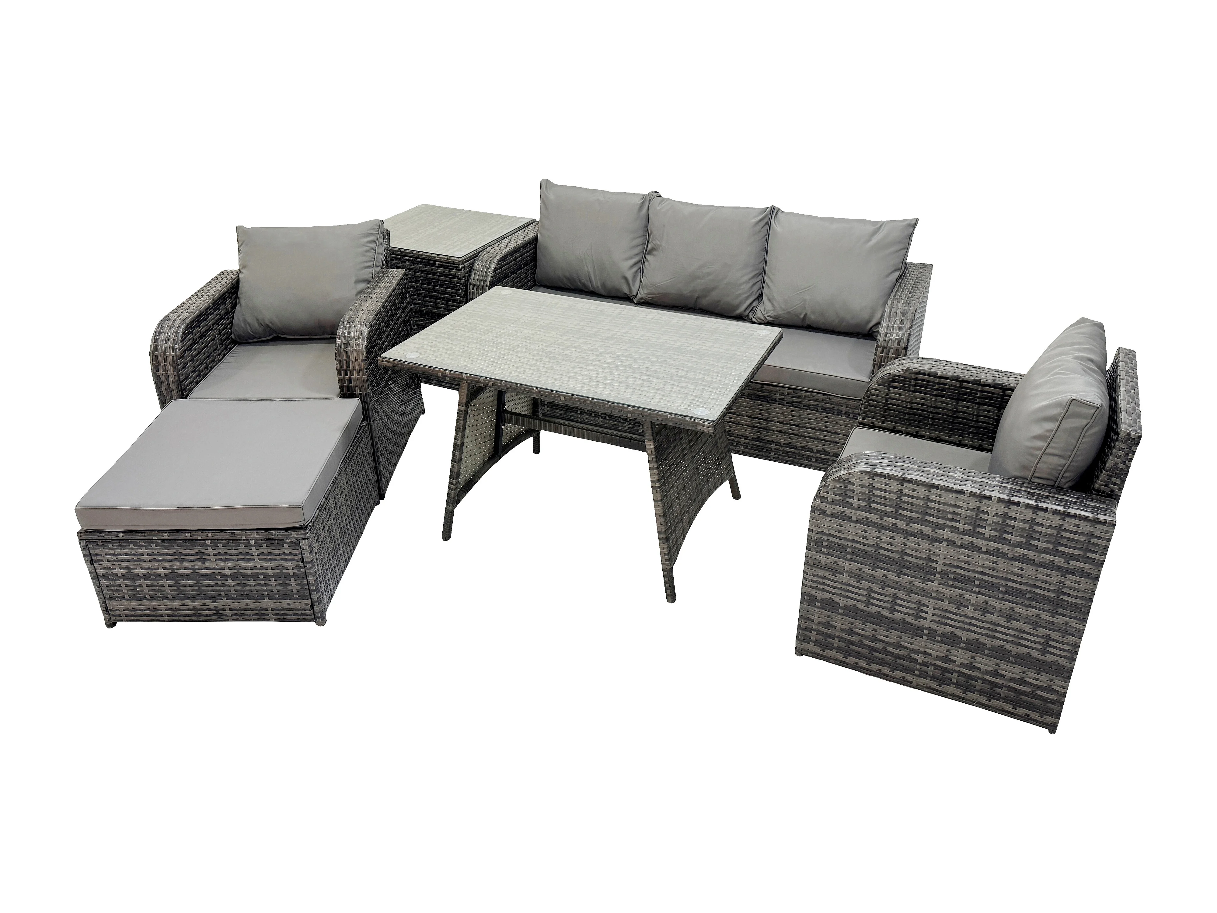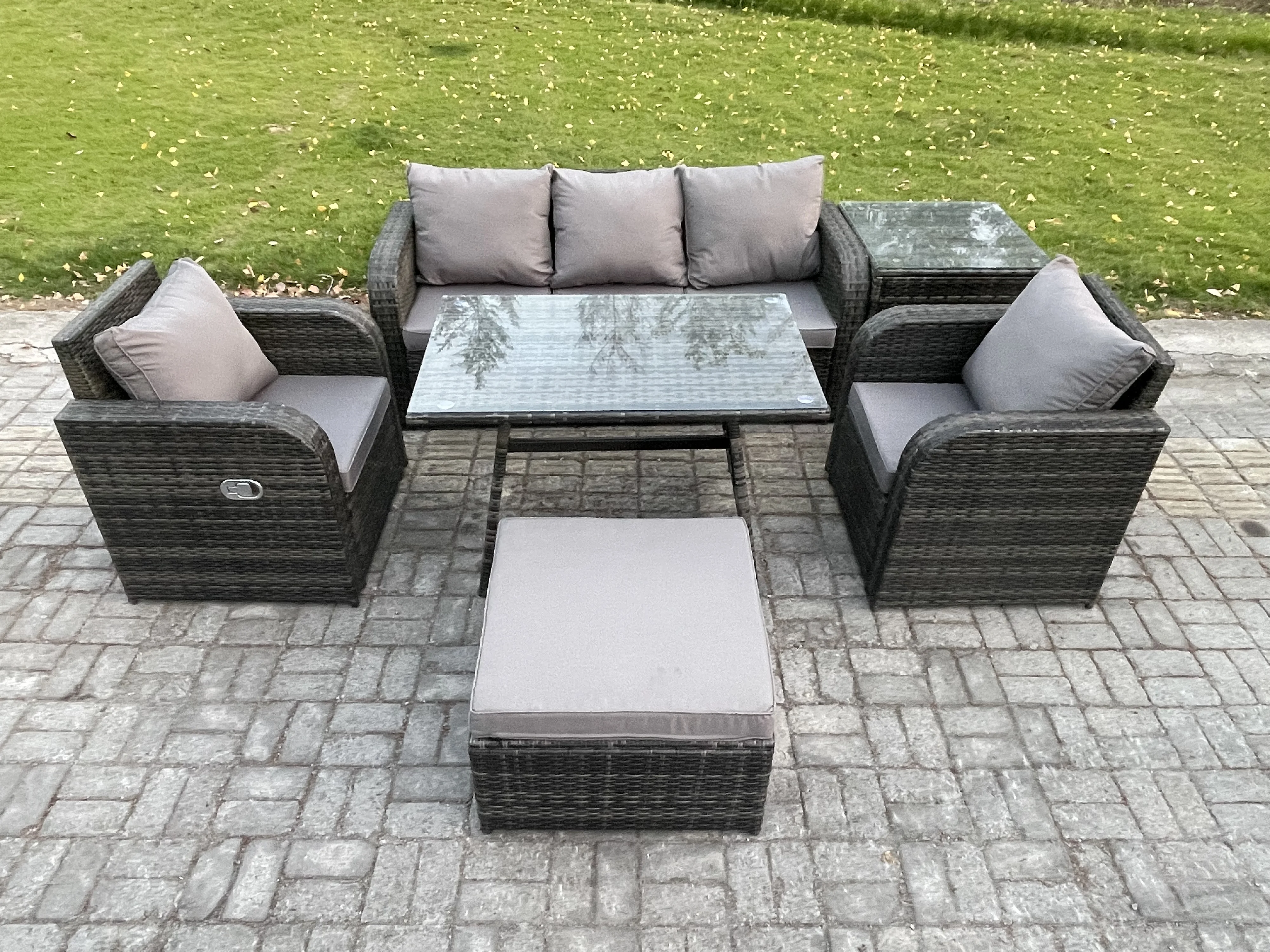 Ensemble de Meubles de Jardin avec Table à manger rectangulaire Chaise inclinable Canapé 3 places Grand tabouret Table d'appoint