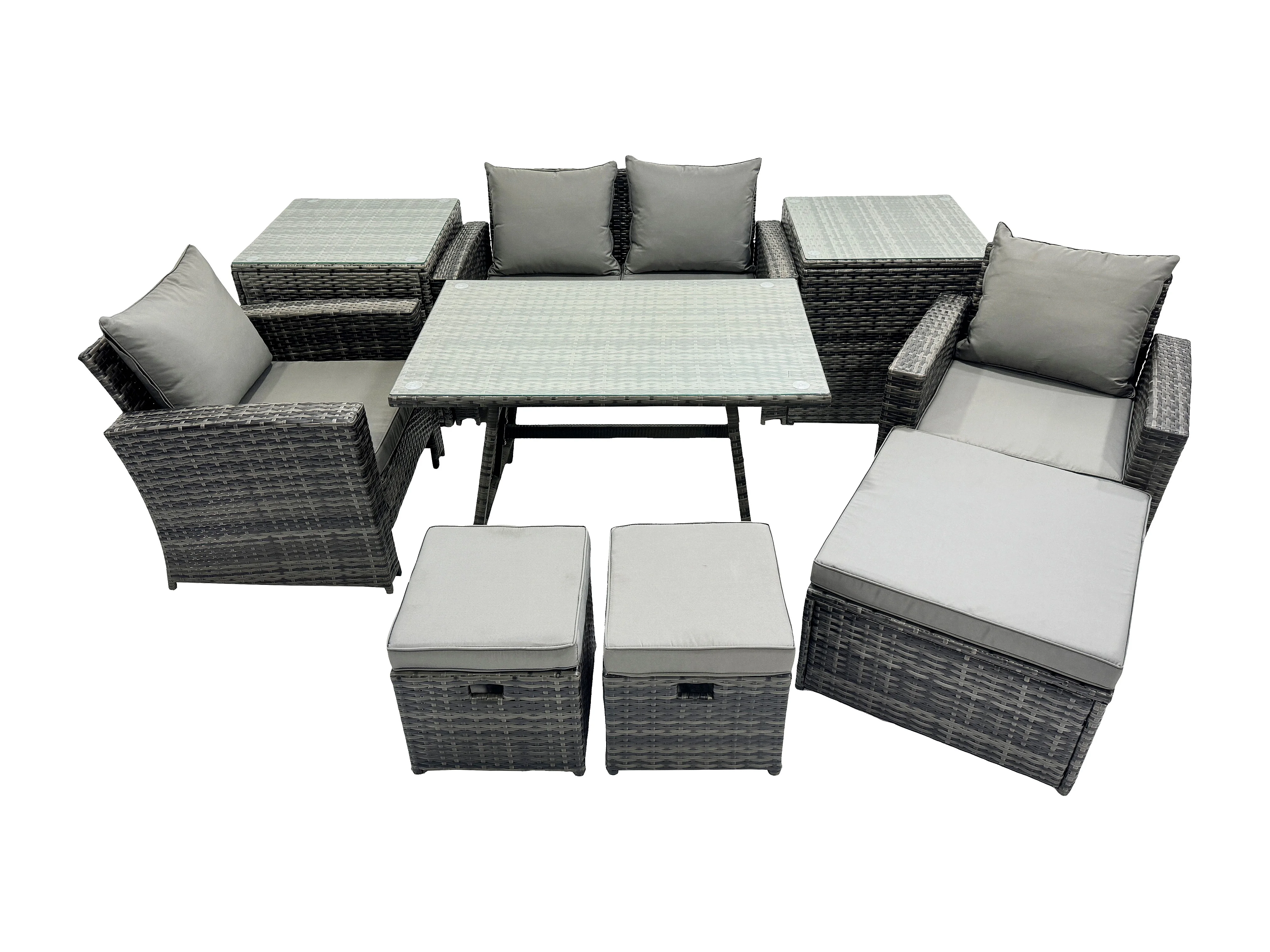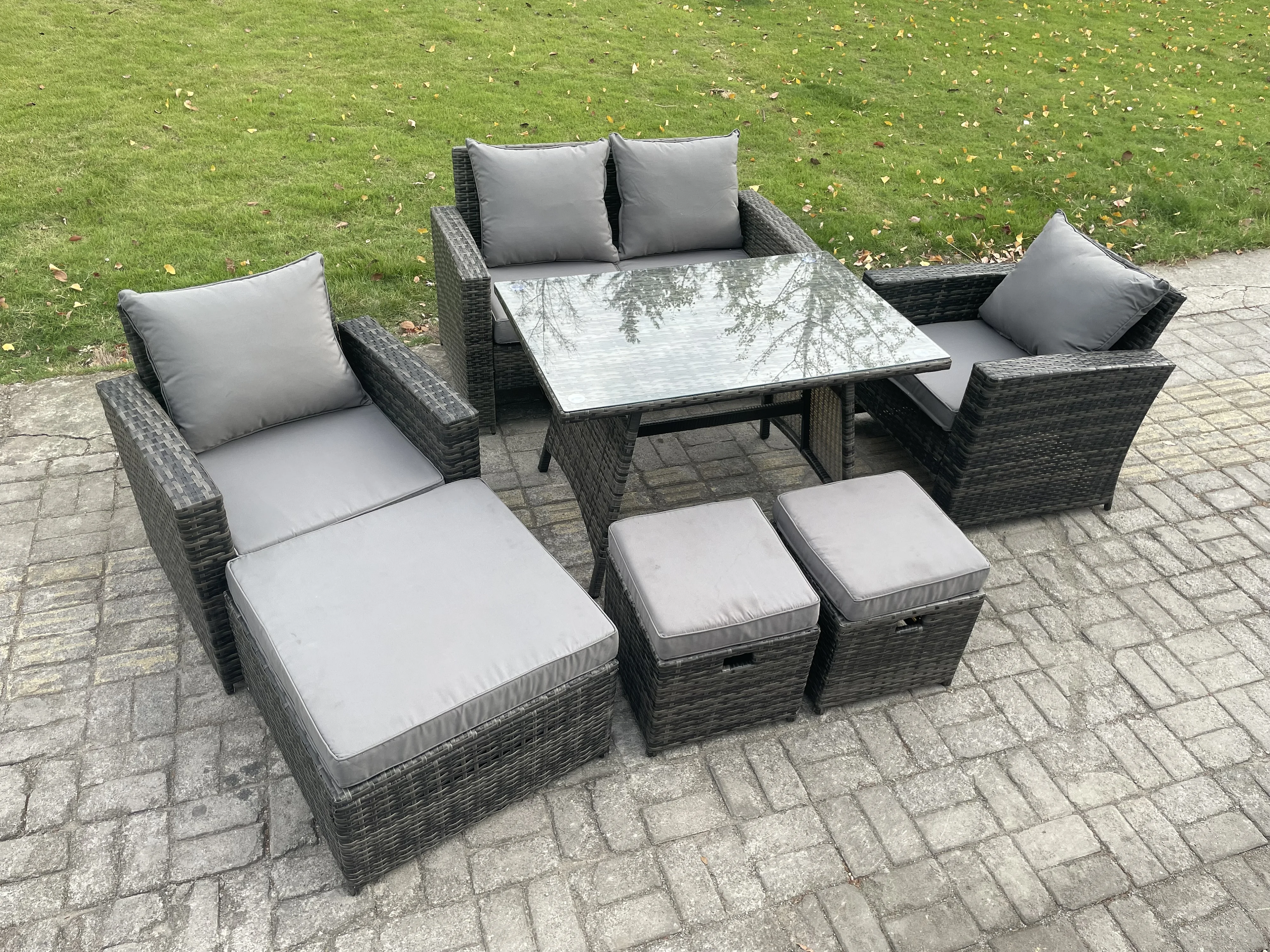 Ensemble de Meubles de Jardin avec Table à manger rectangulaire Fauteuil Canapé 2 places 3 Tabourets