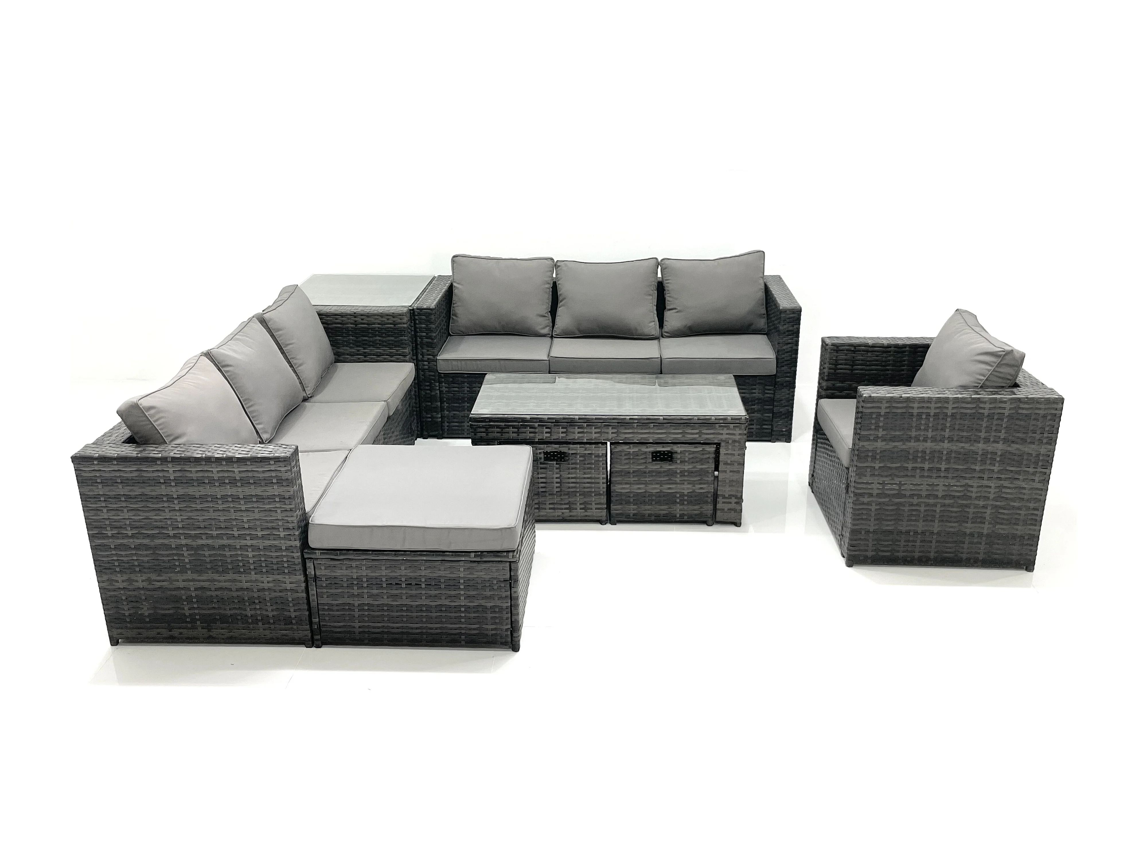 Ensemble de meubles de jardin en polyrotin 10 places avec Canapé Table basse 3 Tabourets Fauteuil Table d'appoint Gris foncé mixte