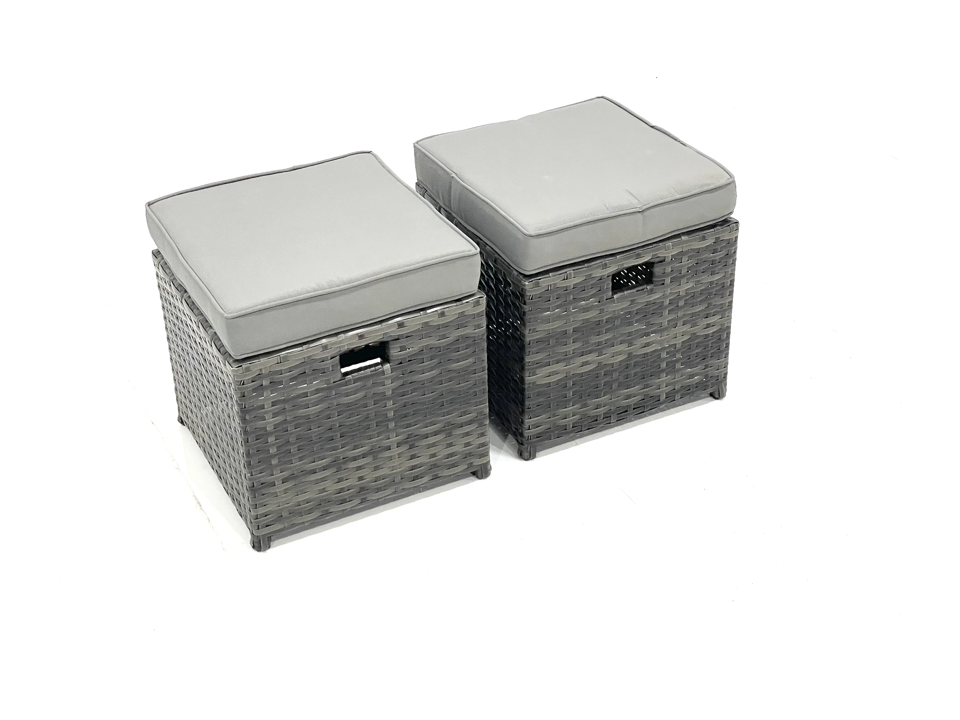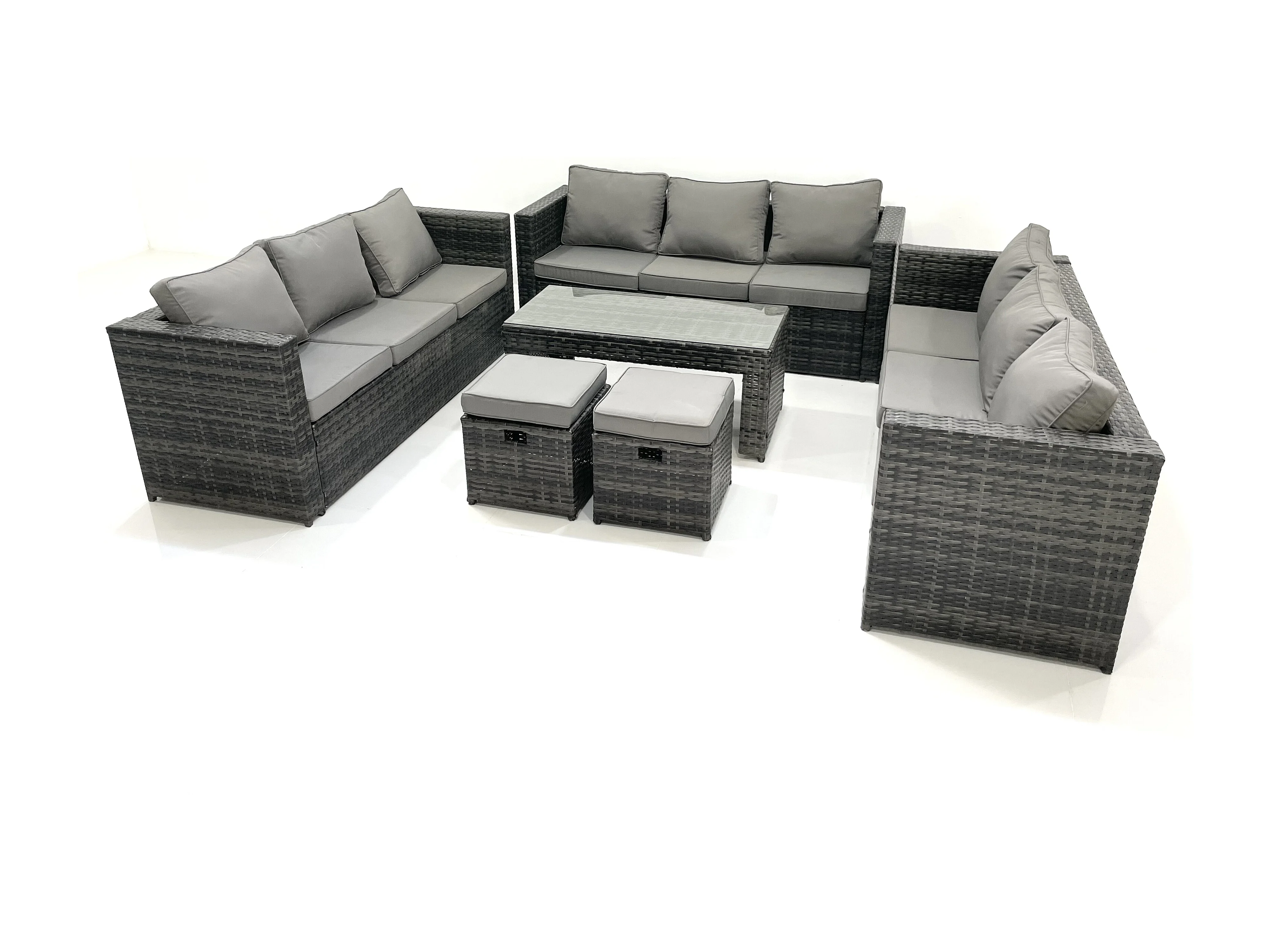 Ensemble de meubles de jardin en polyrotin 11 places avec Table basse carrée 2 Petits tabourets Gris foncé mixte