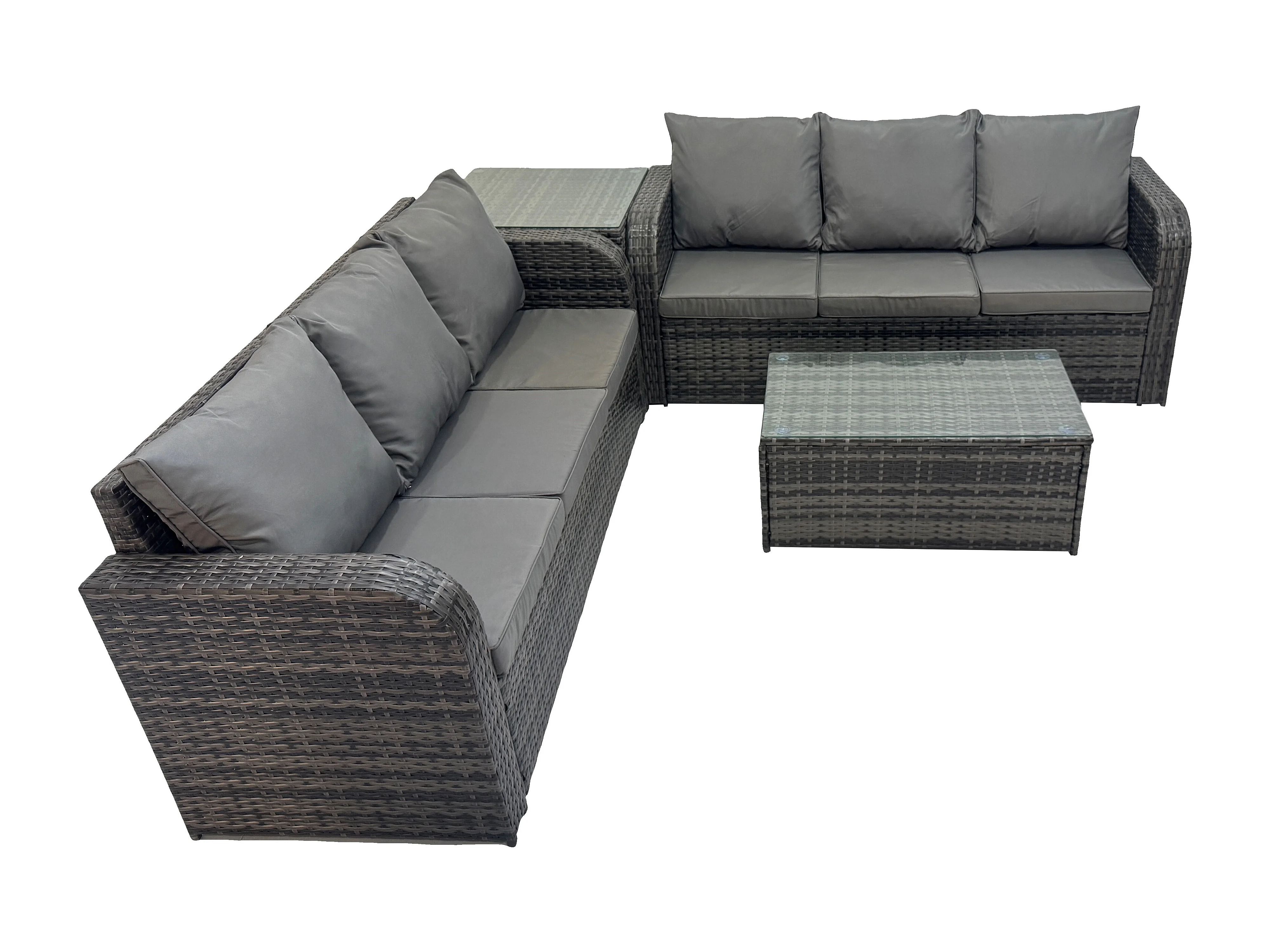 Ensemble de meubles de jardin en polyrotin 6 places avec Table basse rectangulaire Canapé 3 places Table d'appoint