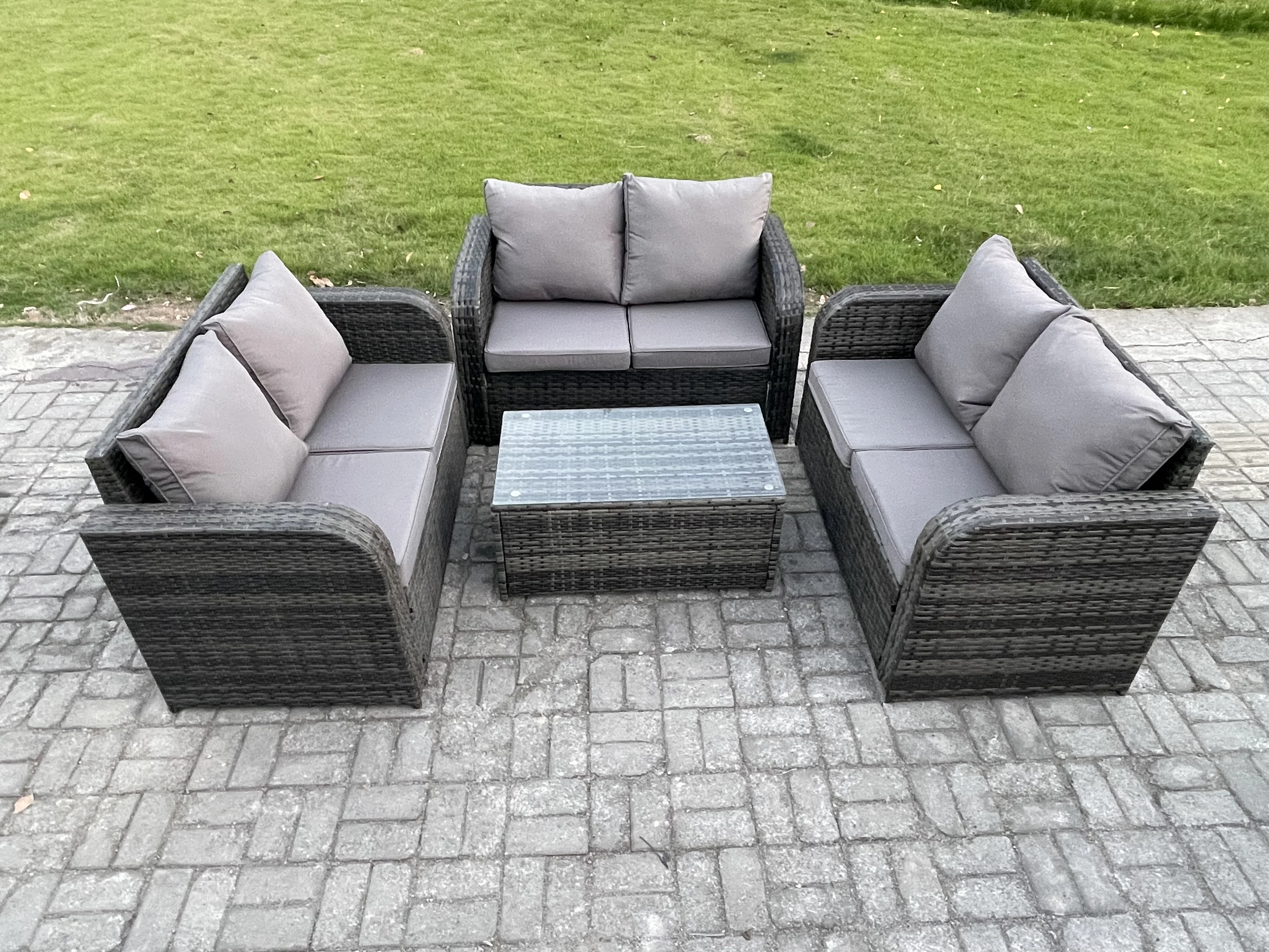Ensemble de meubles de jardin en polyrotin 6 places avec Table basse rectangulaire Canapé d'amour Gris foncé mixte