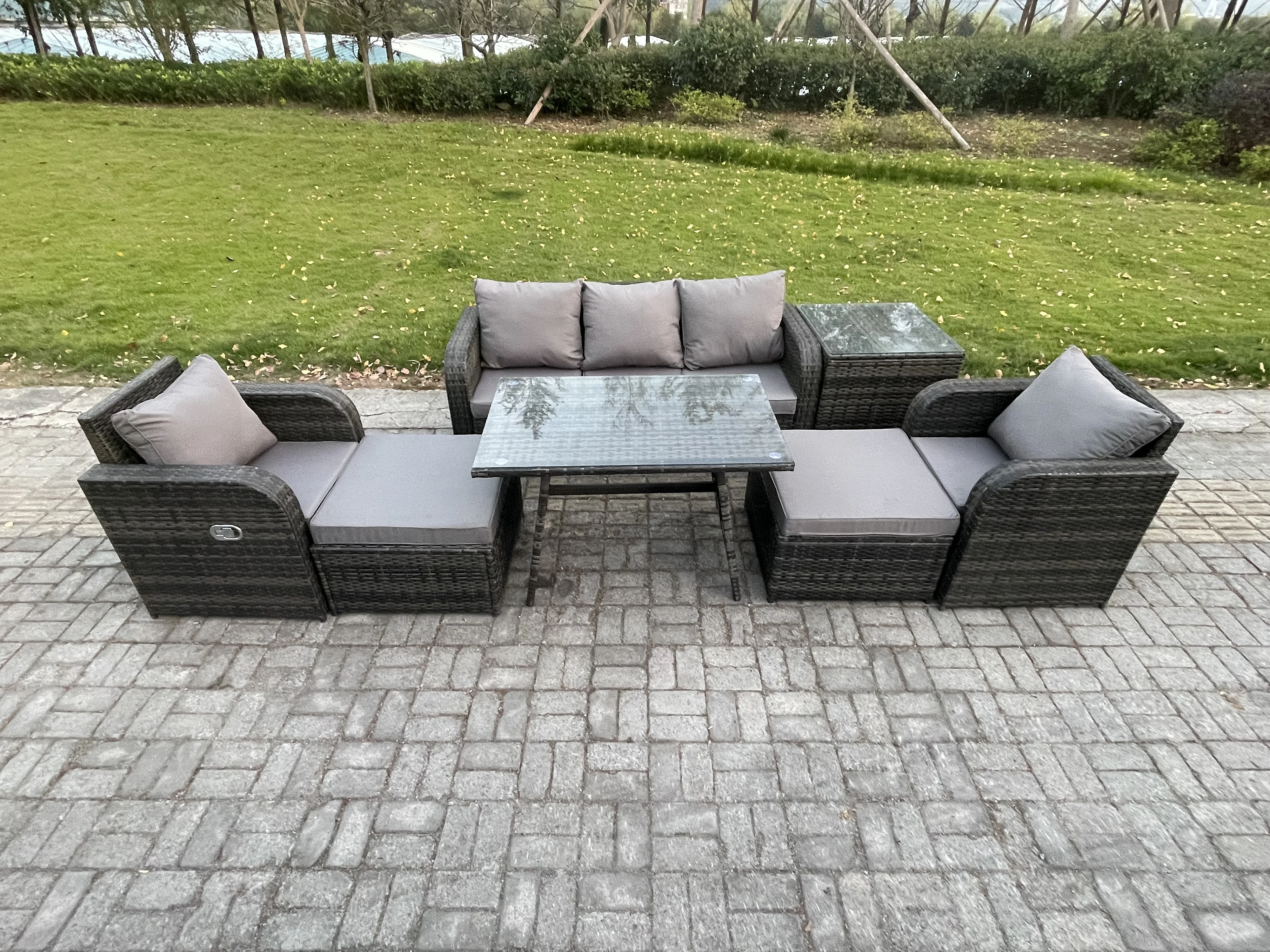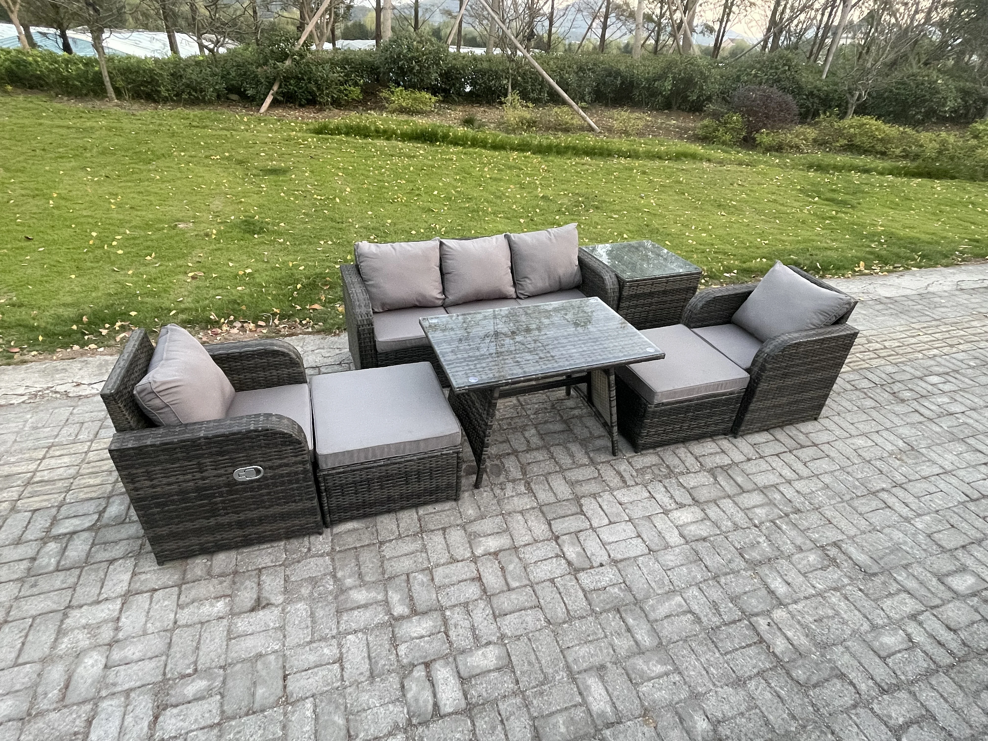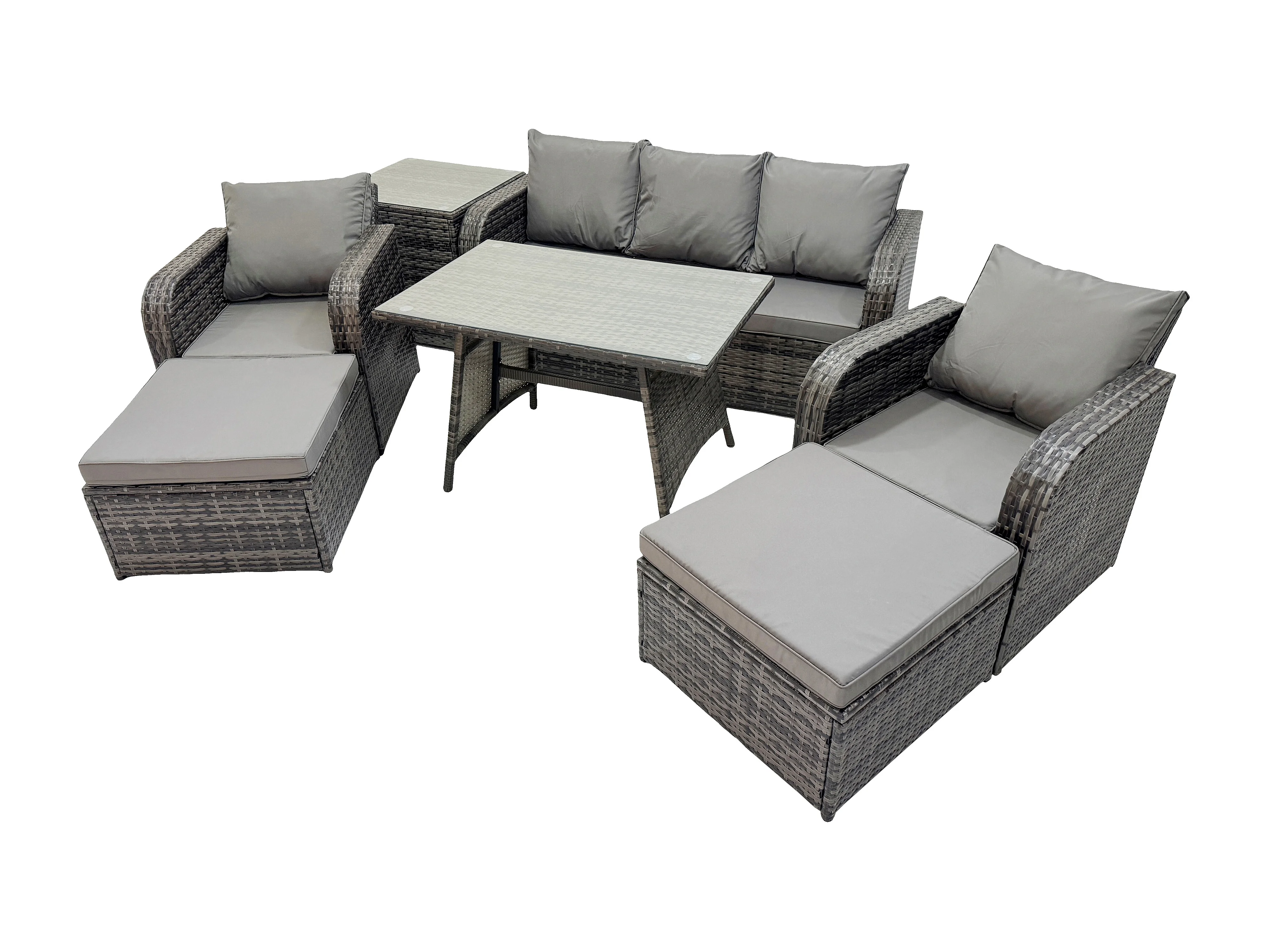 Ensemble de meubles de jardin en polyrotin 7 Pièces avec Table à manger rectangulaire 2 Grand tabourets Table d'appoint