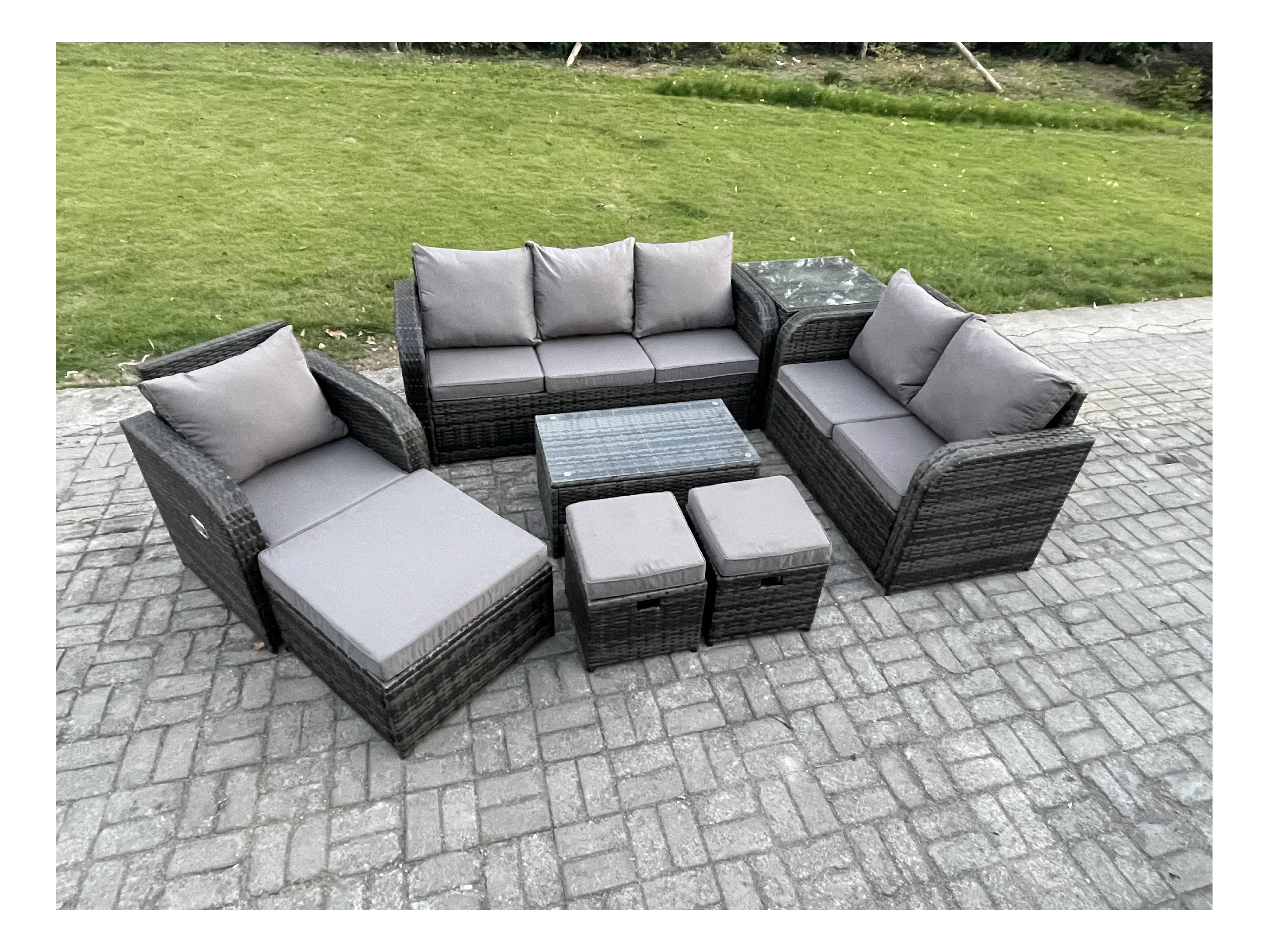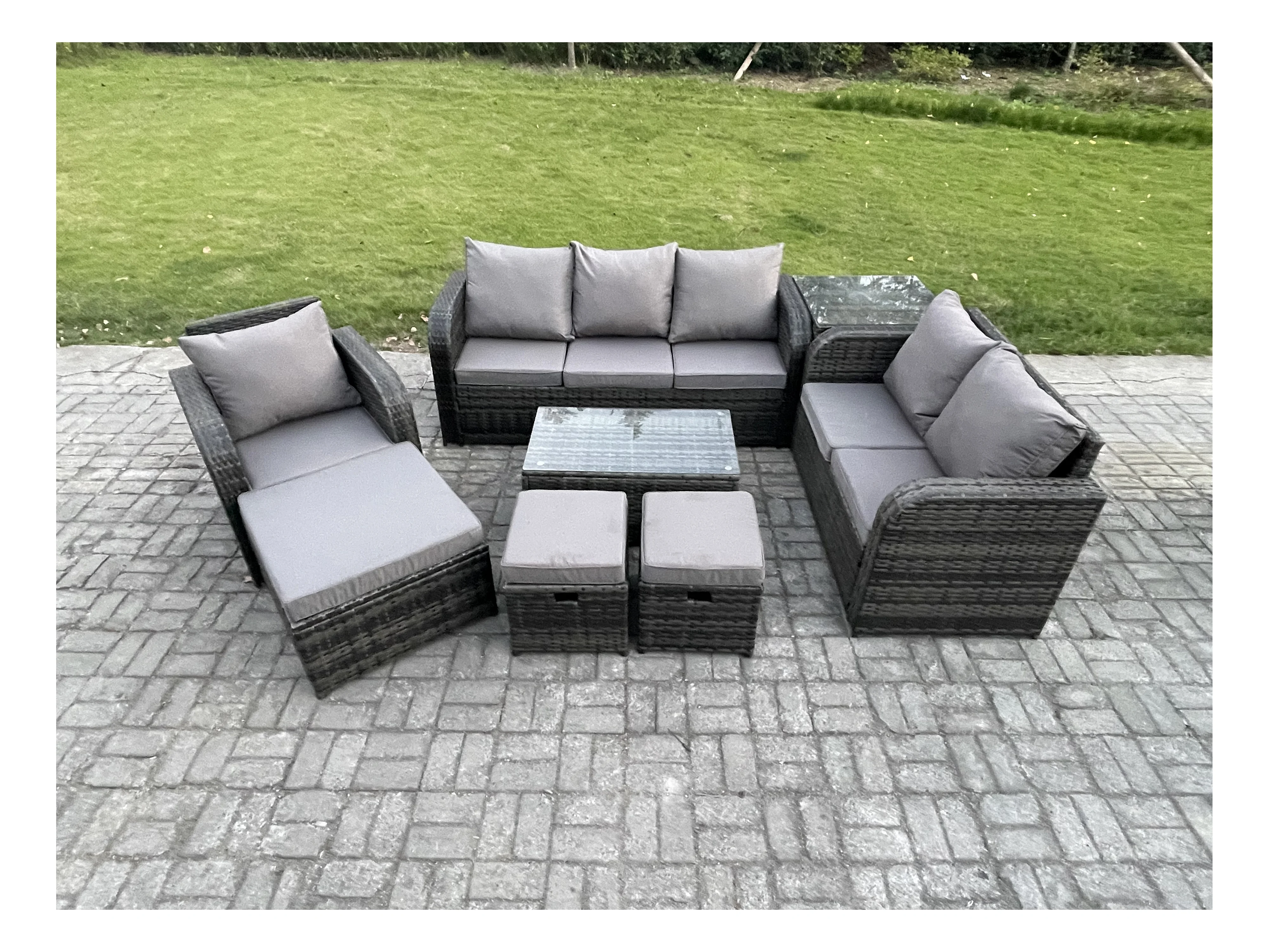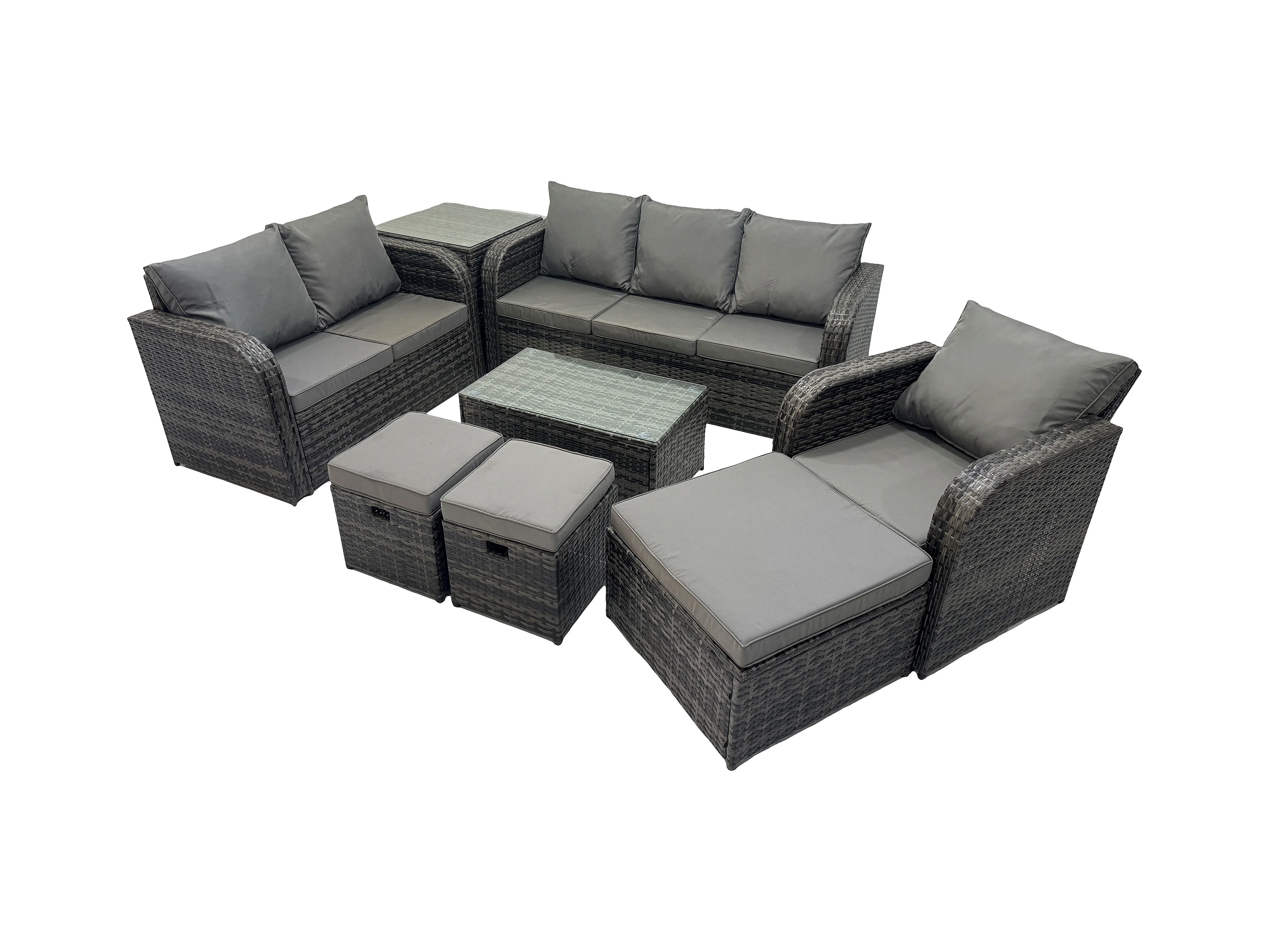 Ensemble de meubles de jardin en polyrotin 8 Pièces avec Table basse rectangulaire Canapé d'amour 3 Tabourets Table d'appoint