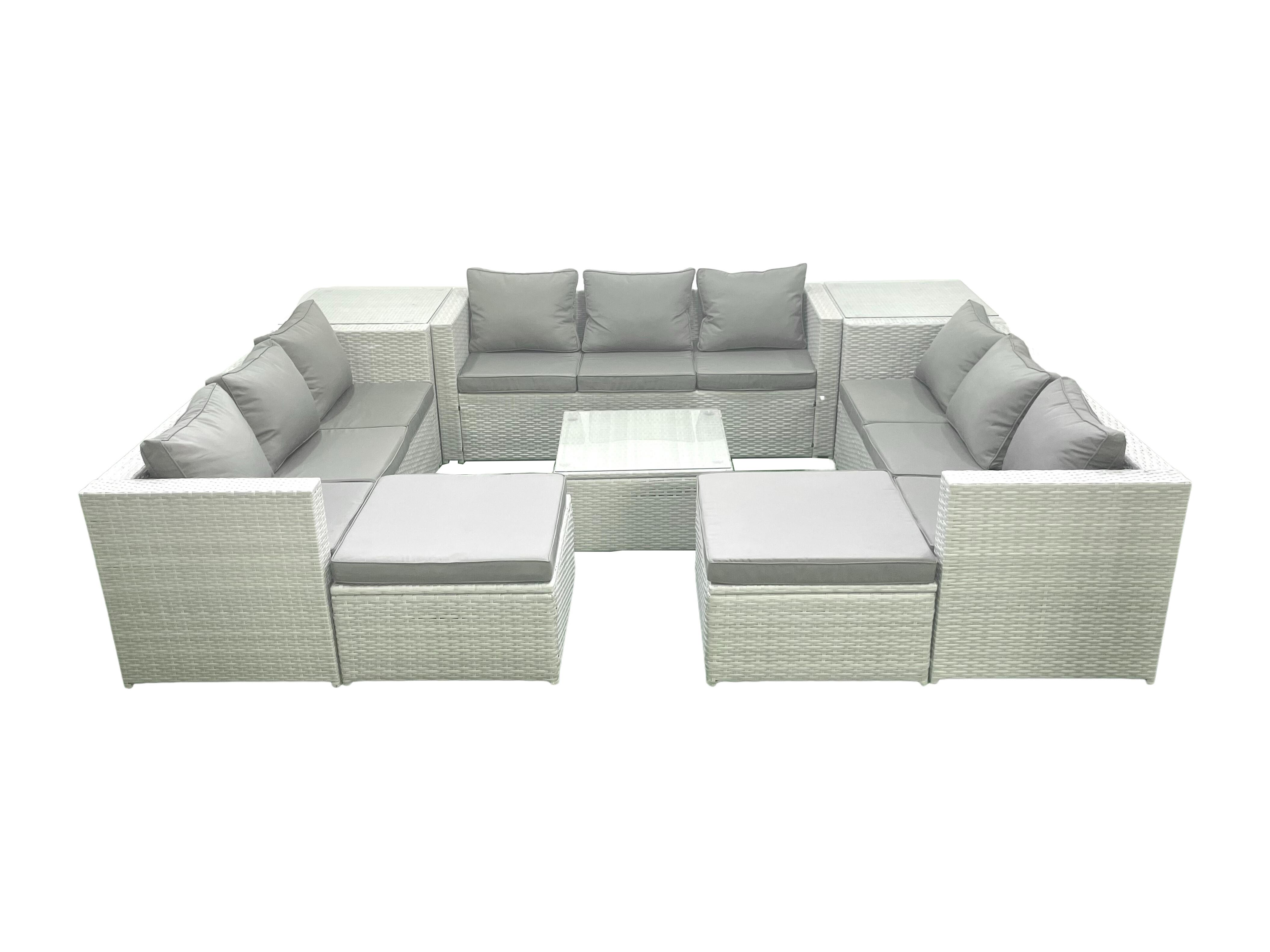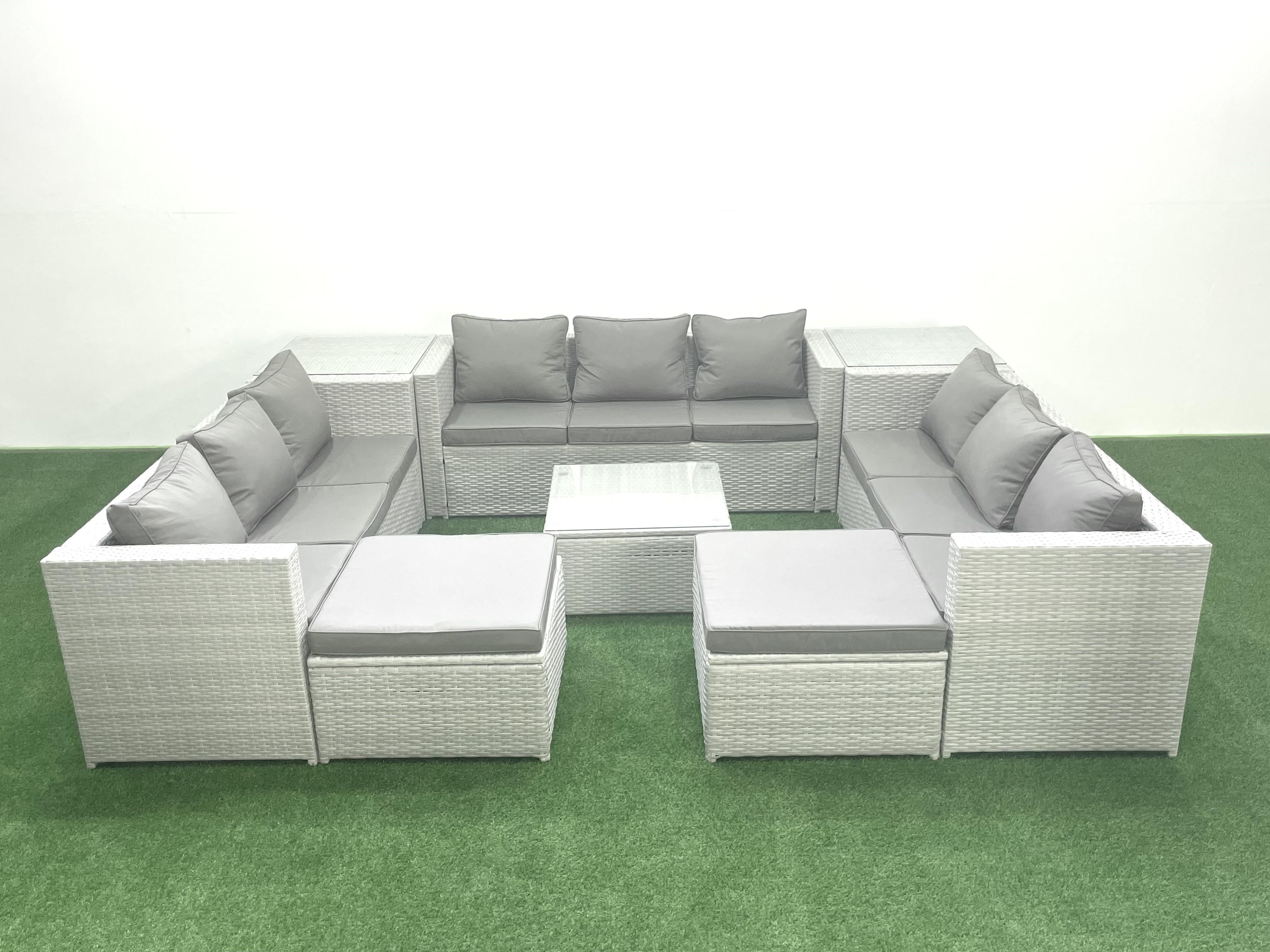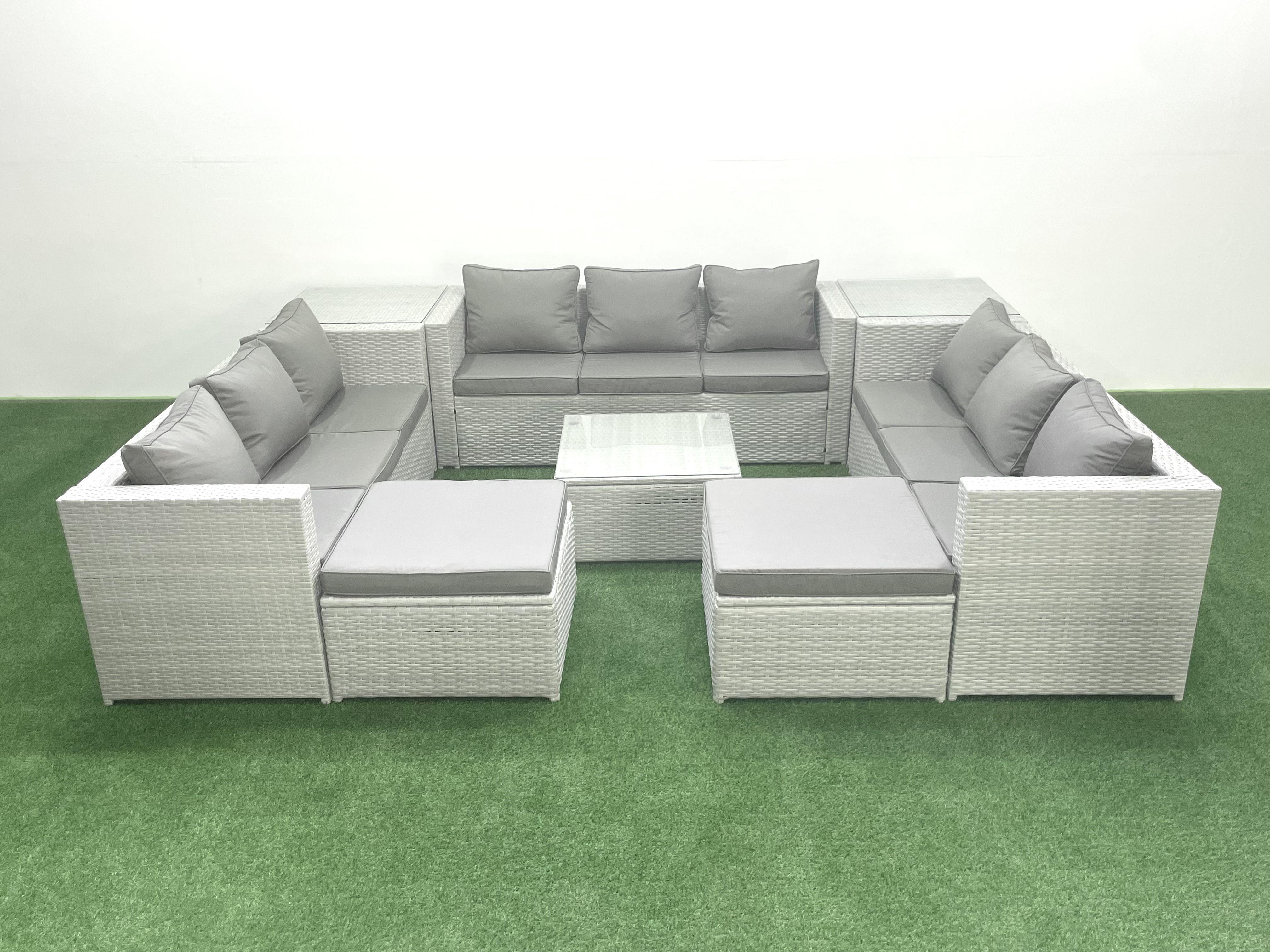 Ensemble de meubles de jardin en rotin 11 places avec Canapé 2 Grand tabourets 2 Tables d'appoint Gris clair mixte