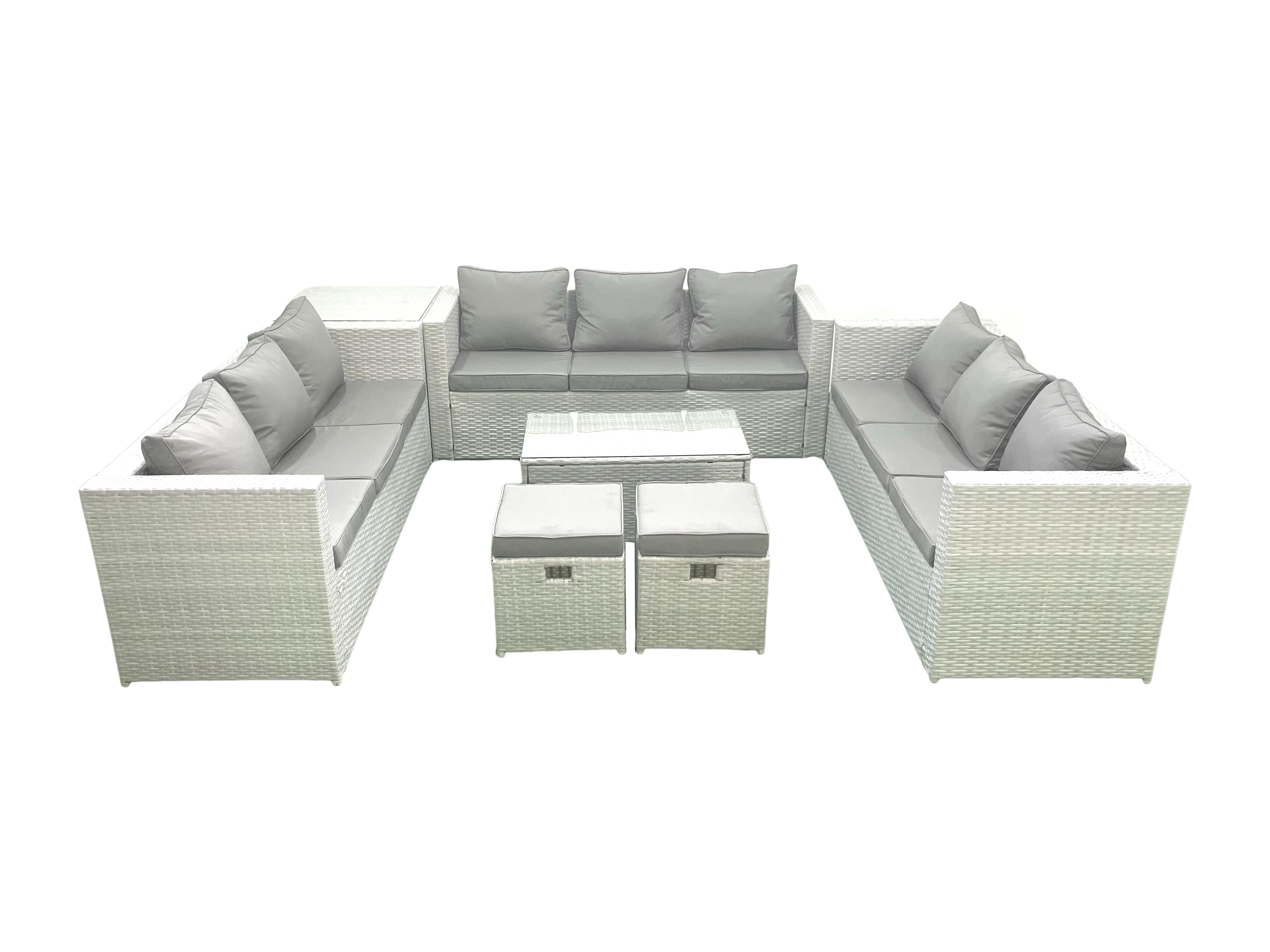 Ensemble de meubles de jardin en rotin 11 places avec Canapé de jardin Table basse 2 Petit pouf Table d'appoint Gris clair mixte