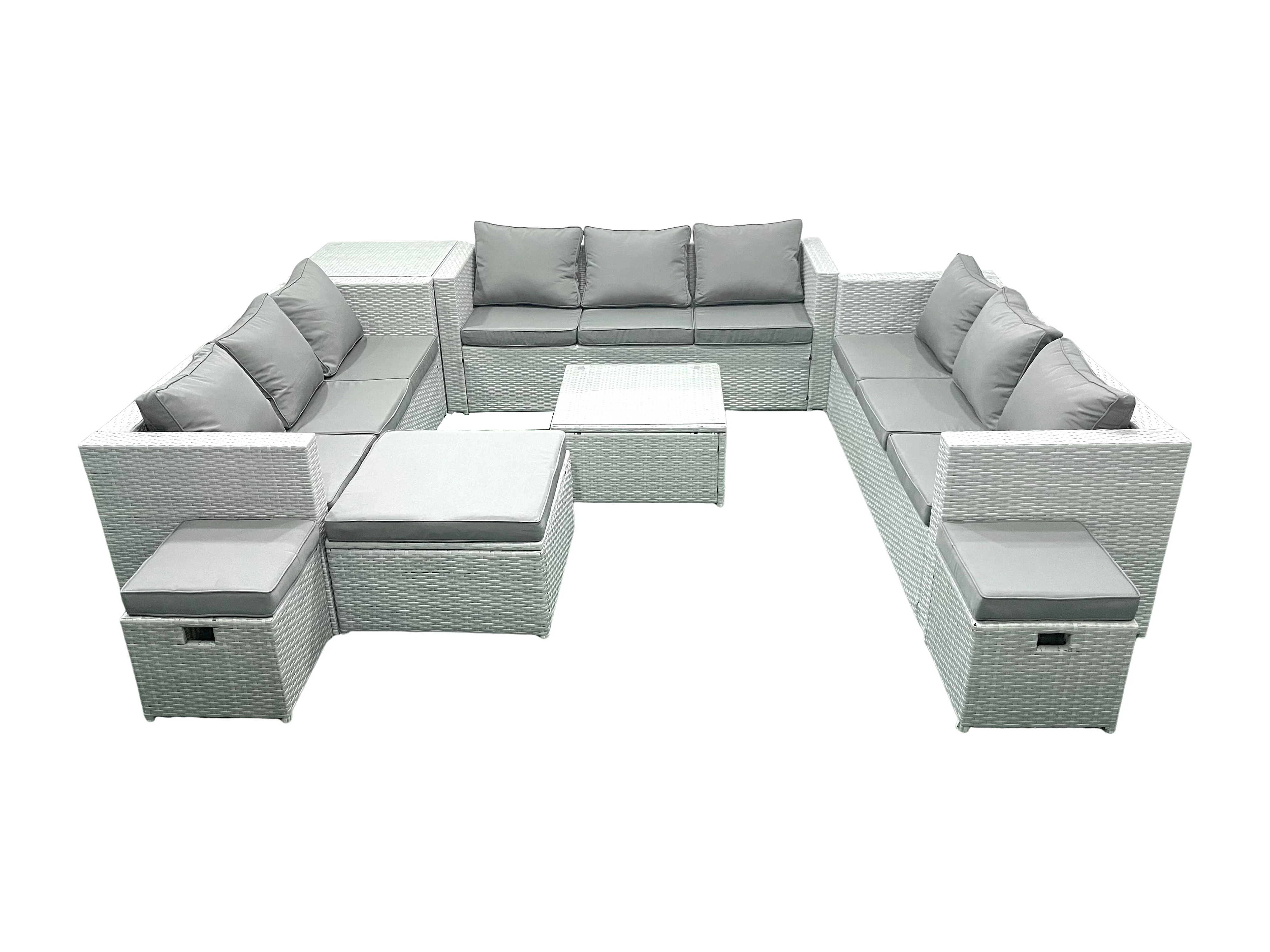 Ensemble de meubles de jardin en rotin 12 places avec Canapé 3 Tabourets Table d'appoint Gris clair mixte
