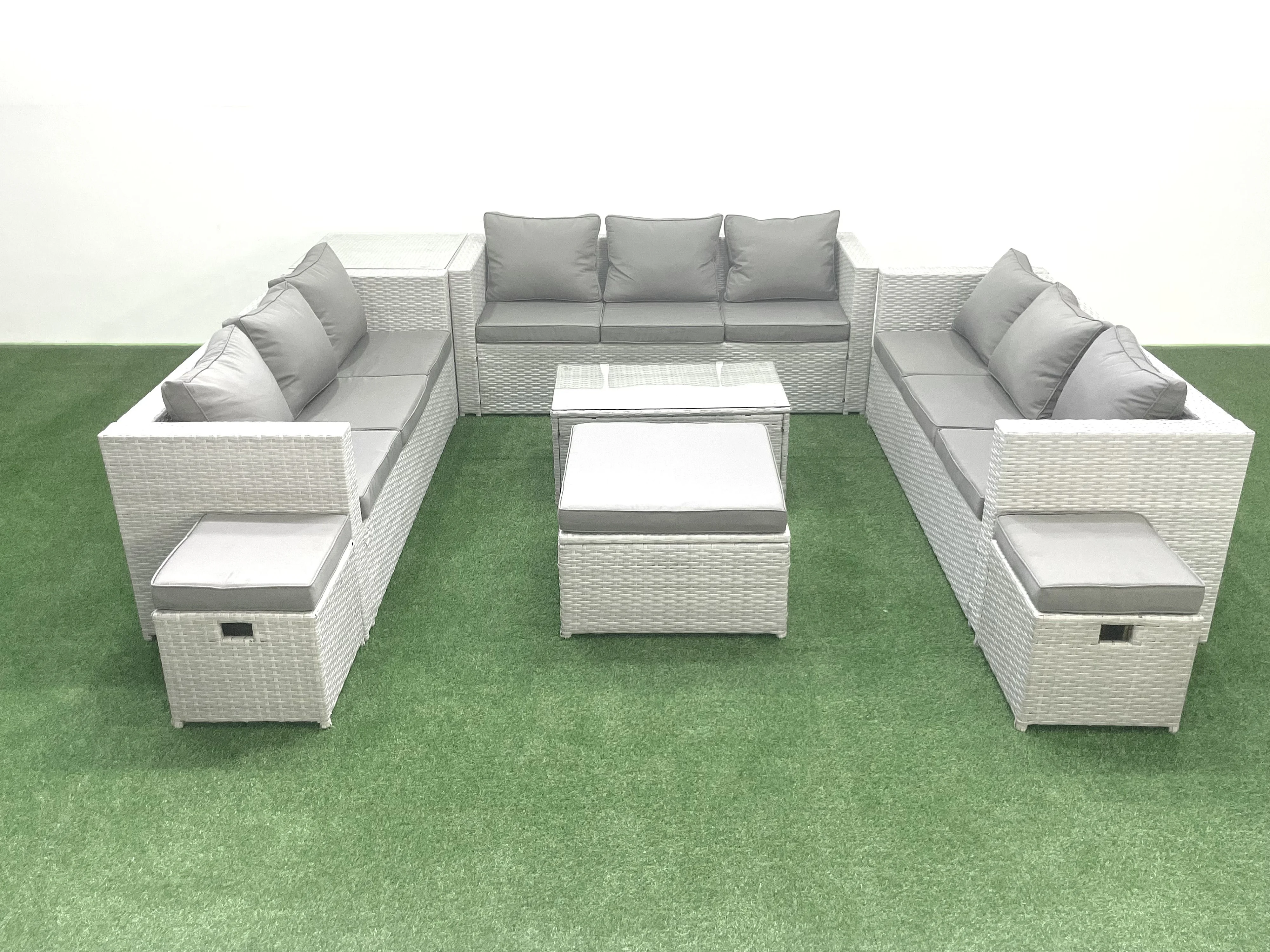 Ensemble de meubles de jardin en rotin 12 places avec Canapé de jardin Table basse 3 Tabourets Table d'appoint Gris clair mixte