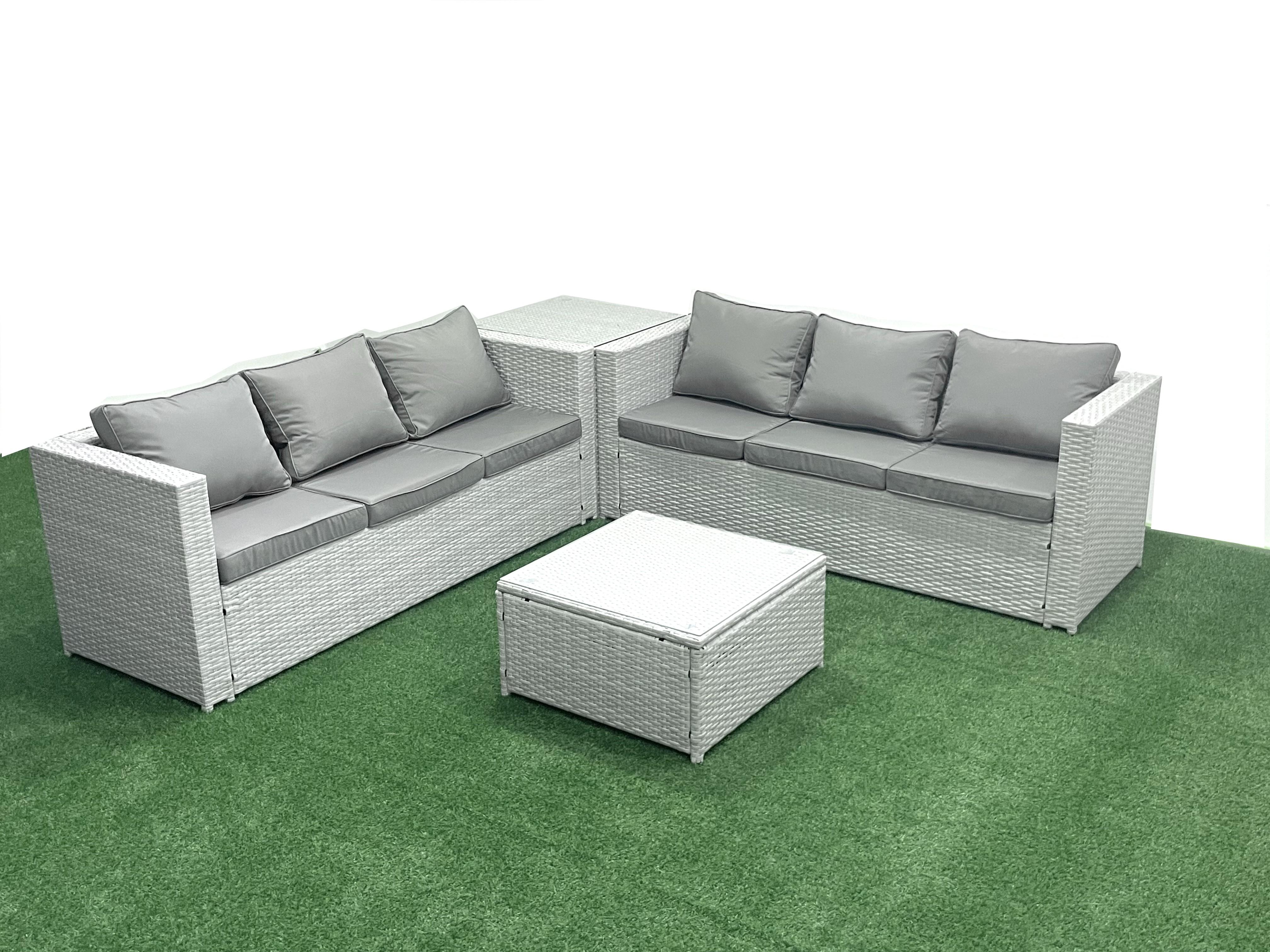 Ensemble de meubles de jardin en rotin 6 places Ensemble de canapés de jardin avec Table d'appoint Gris clair mixte