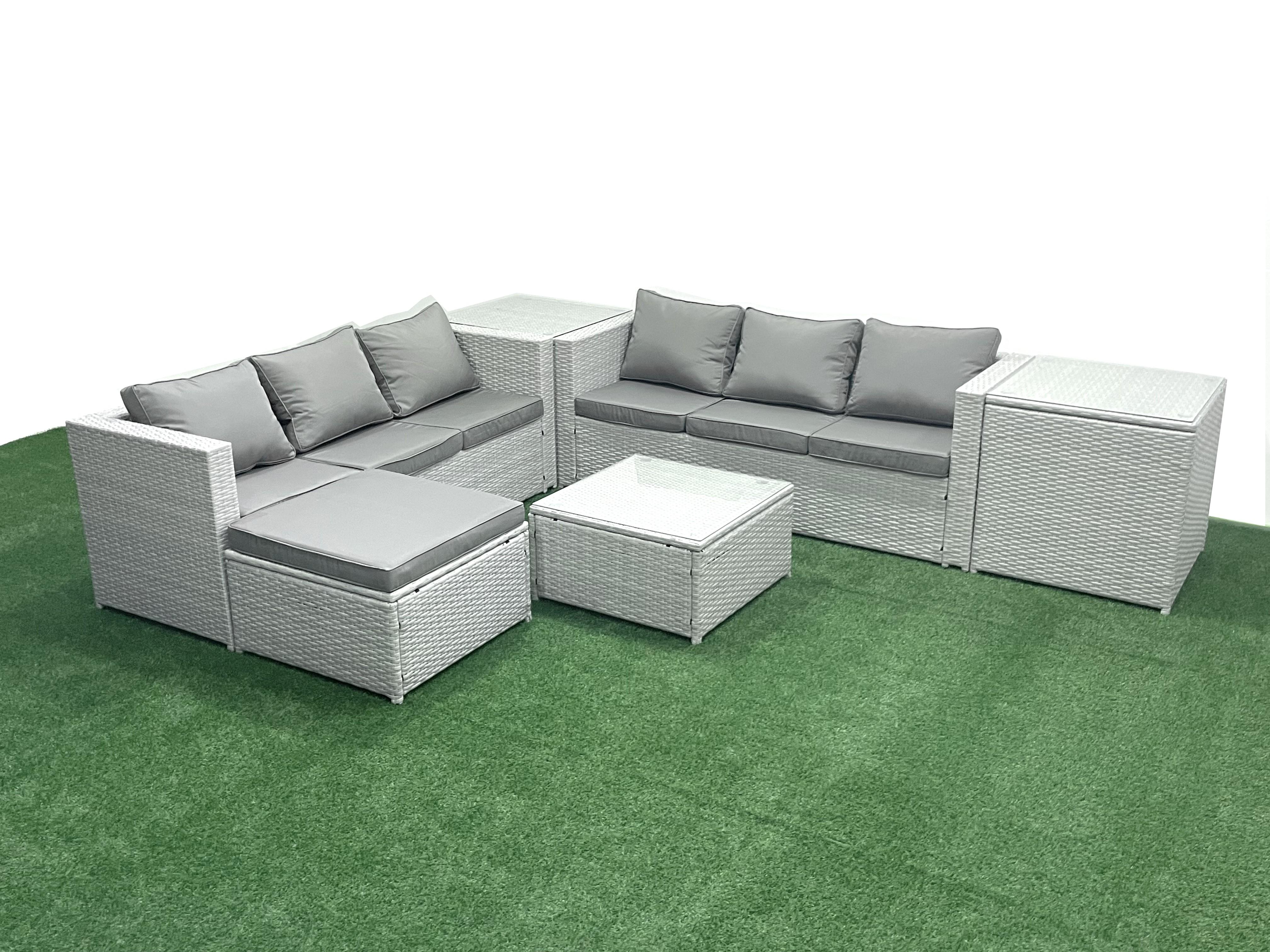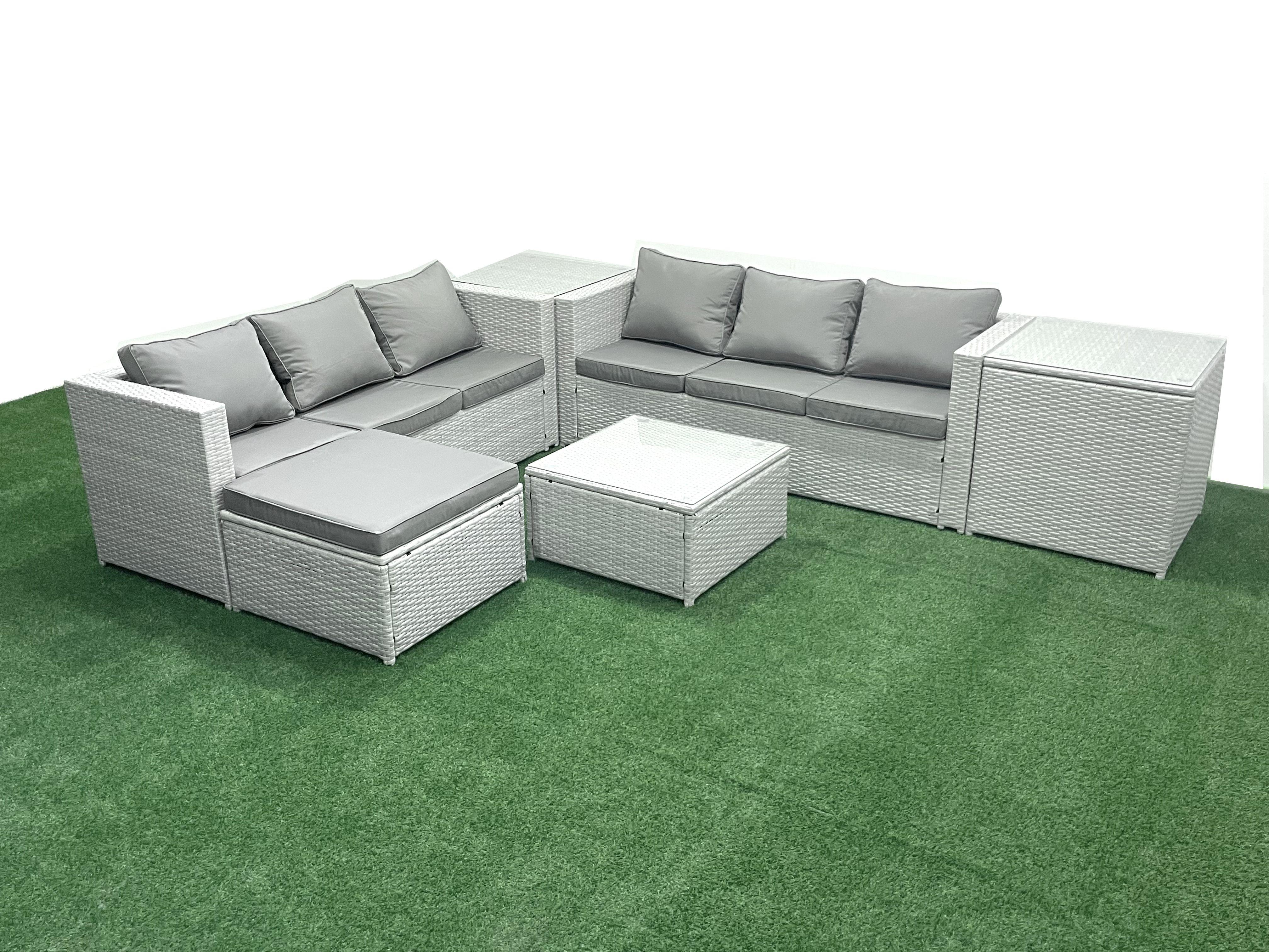 Ensemble de meubles de jardin en rotin 7 places Ensemble de canapés de jardin avec Grand tabouret 2 Tables d'appoint Gris clair mixte