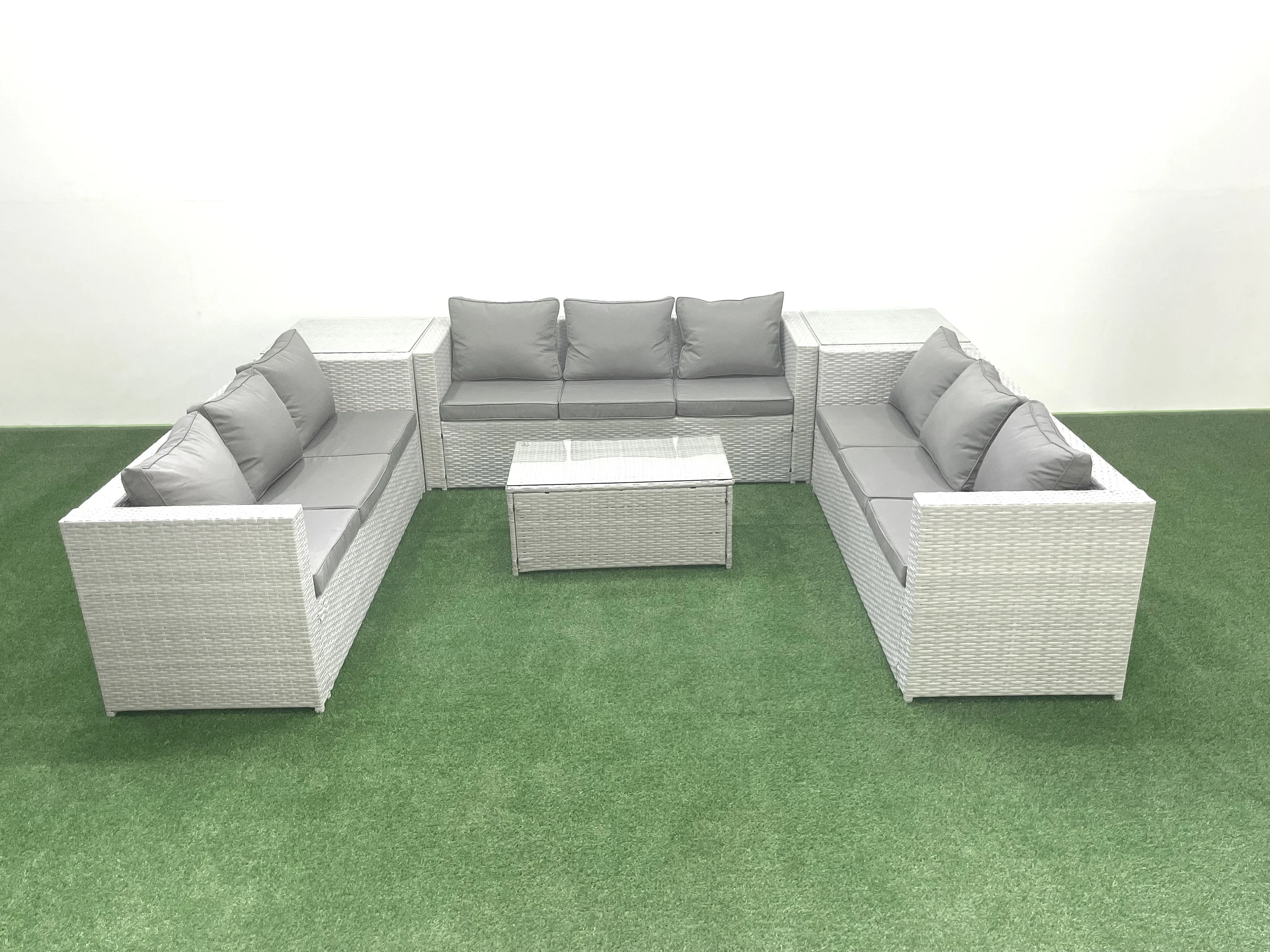 Ensemble de meubles de jardin en rotin 9 places avec Canapé de jardin Table basse 2 Tables d'appoint Gris clair mixte