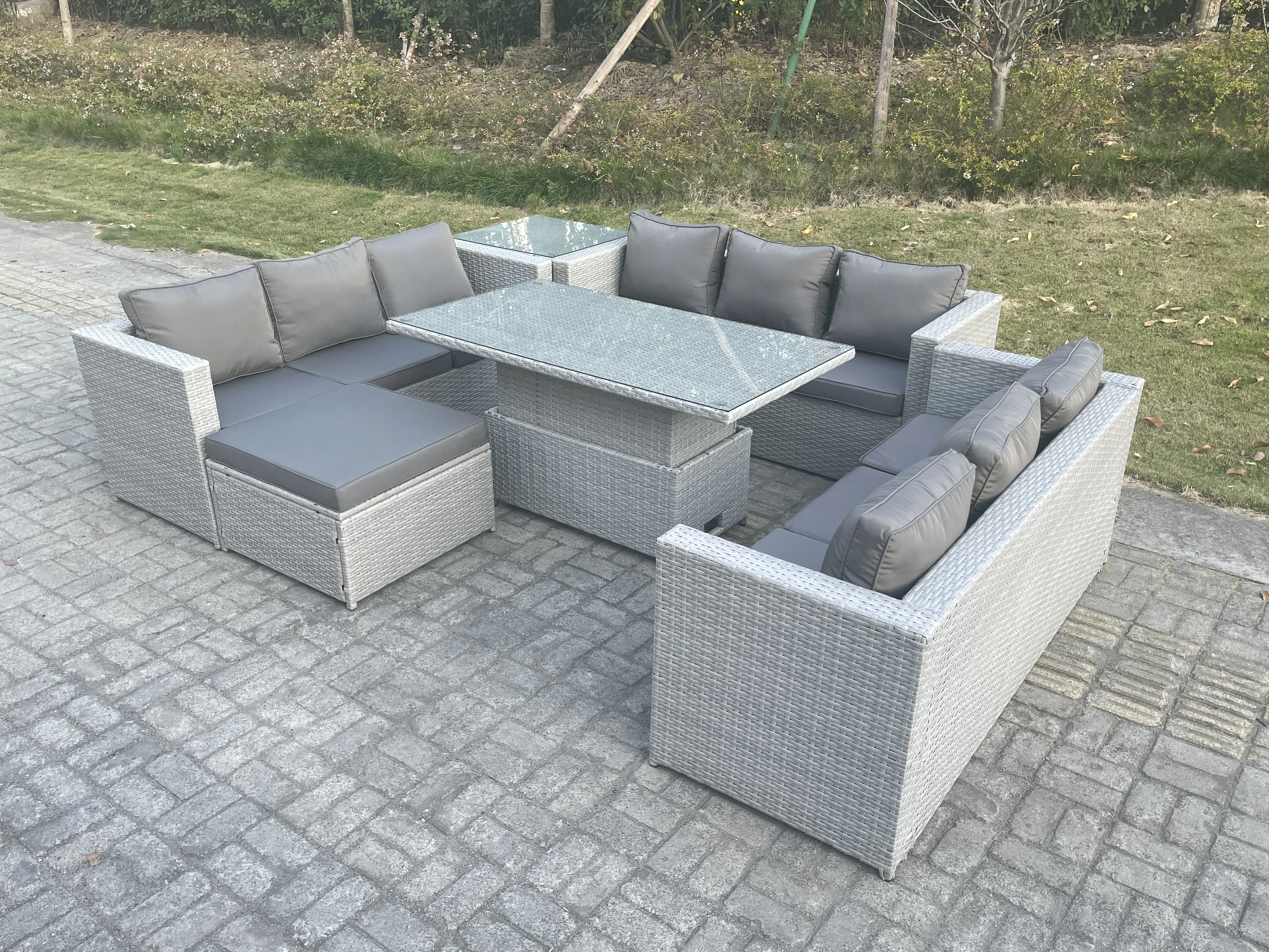 Ensemble de meubles de jardin en rotin ave Canapé,Table élévatrice und Tabourets,Table d'appoint 6 Pièces Groupe de sièges