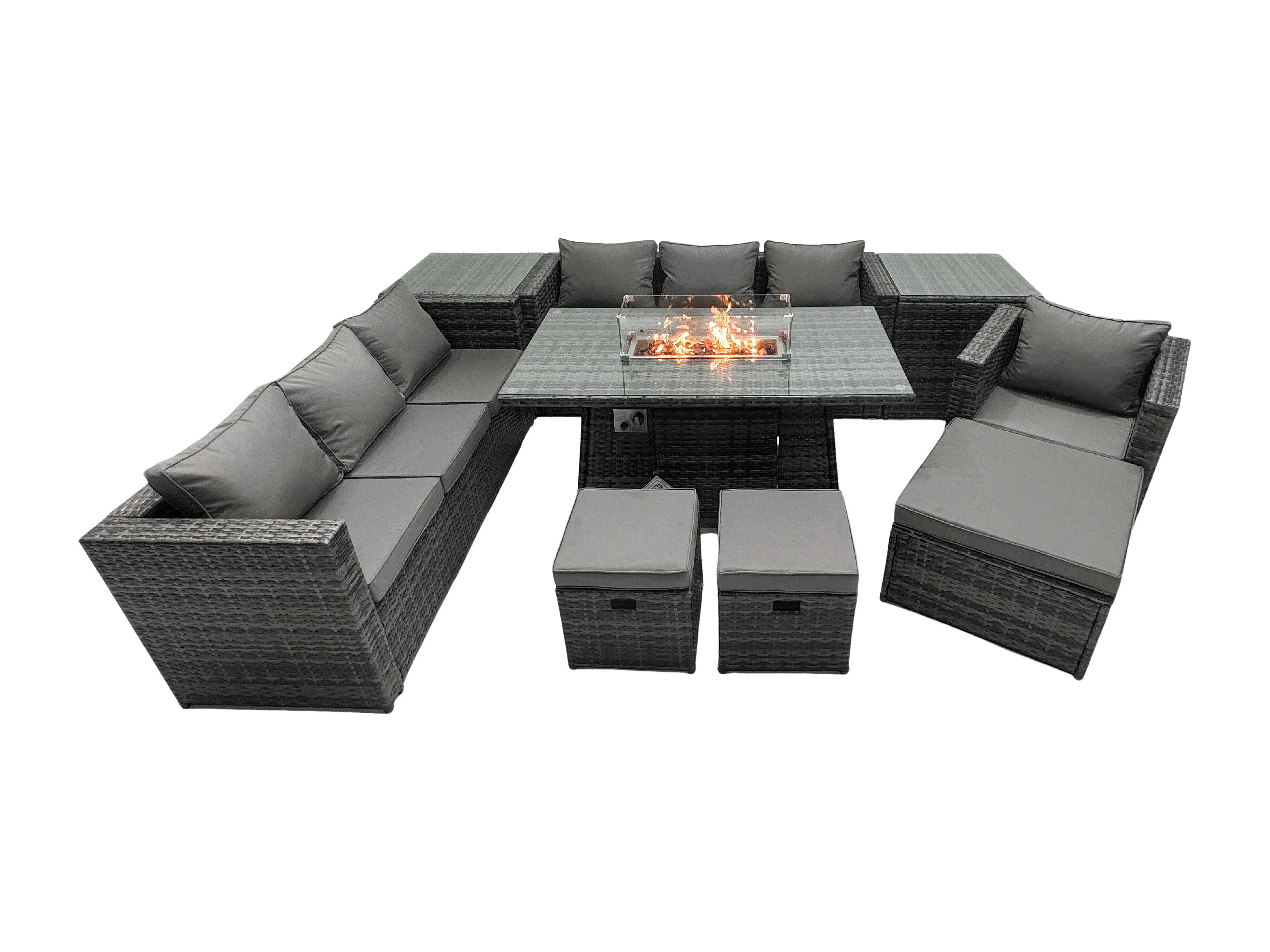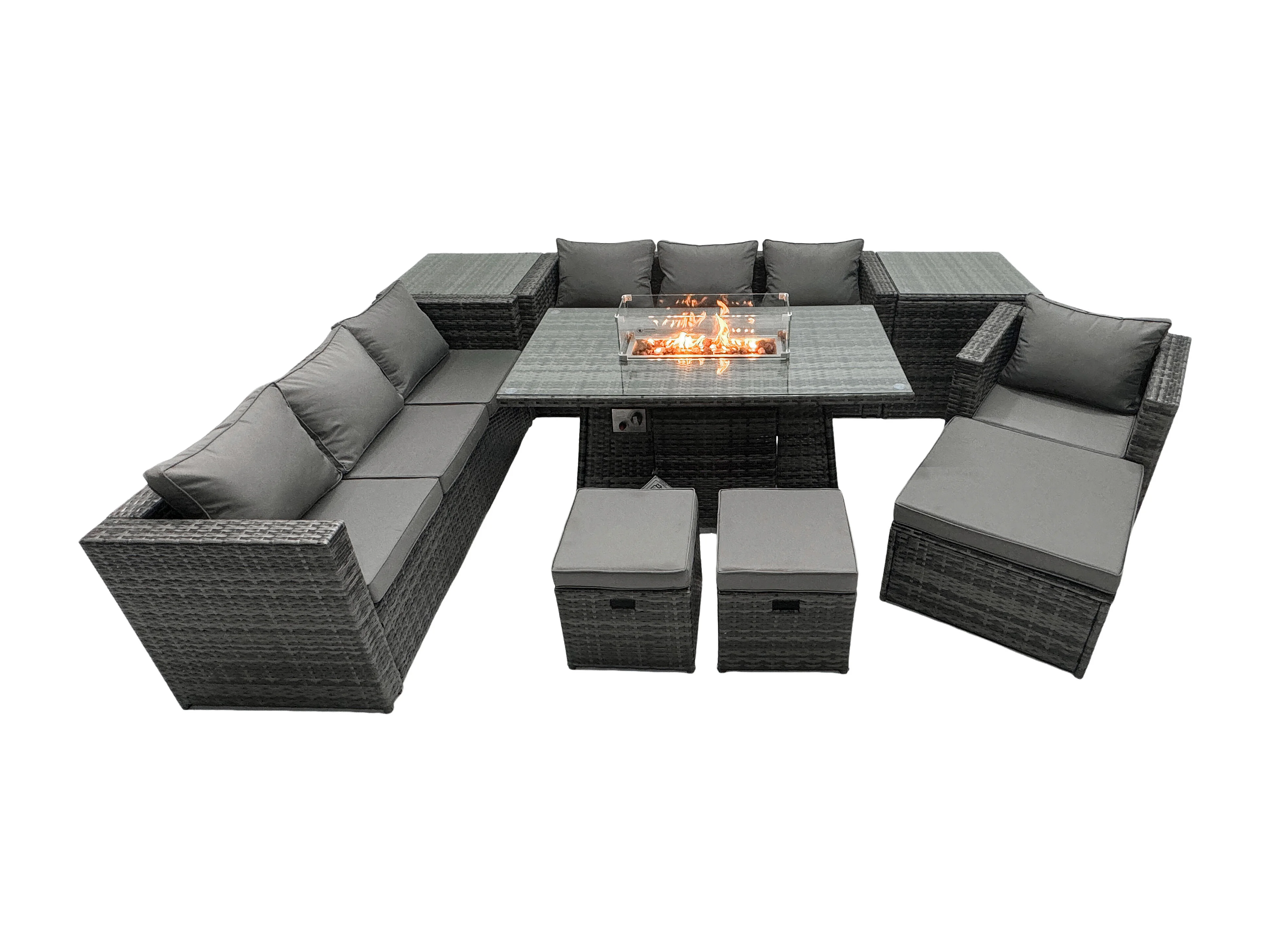 Ensemble de meubles de jardin en rotin ave Table de foyer à gaz 10 places Ensemble de canapés avec 2 Tables d'appoint 3 Tabourets