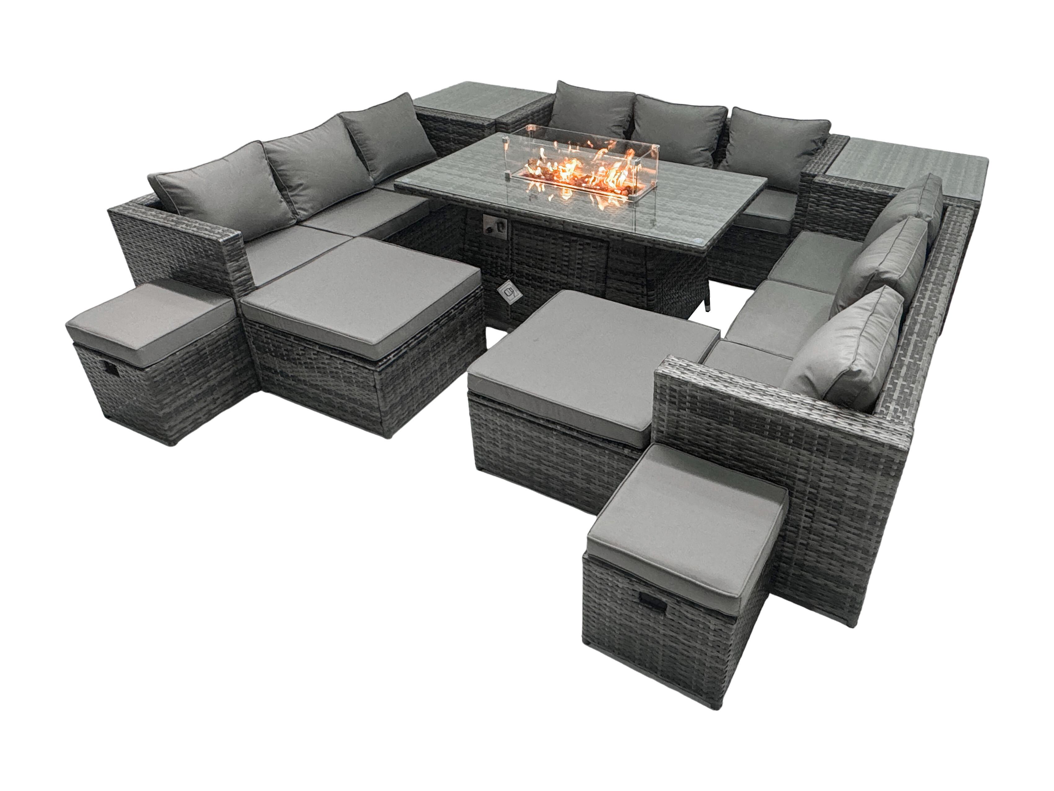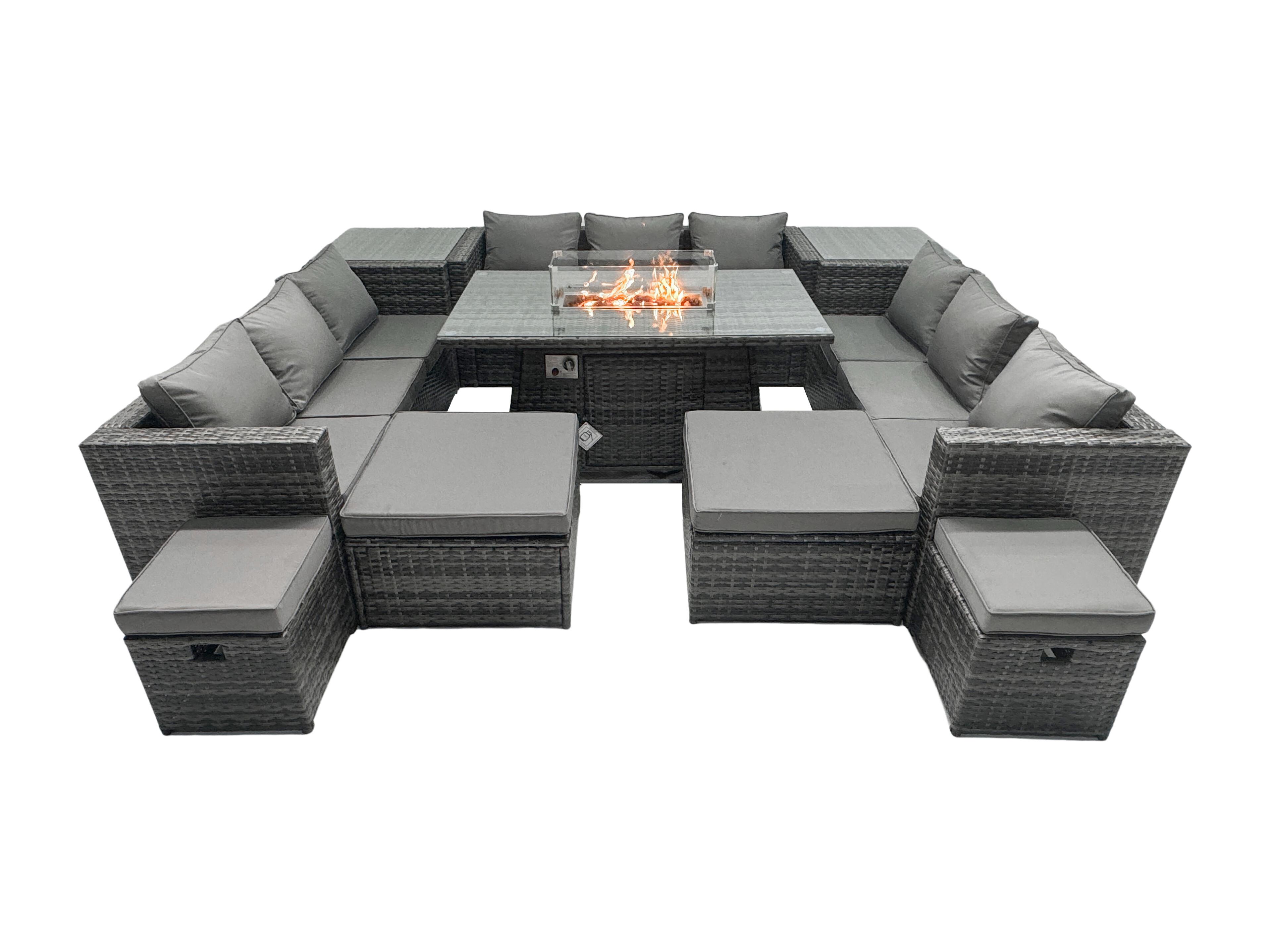 Ensemble de meubles de jardin en rotin ave Table de foyer à gaz 13 places Ensemble de canapés avec 4 Tabourets 2 Tables d'appoint