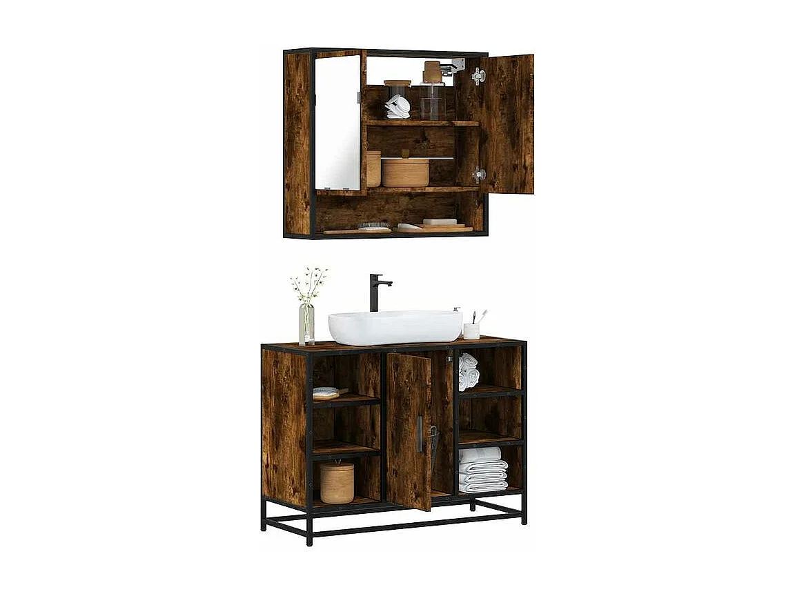 Ensemble de meubles de salle de bain 2 pcs Chêne fumé
