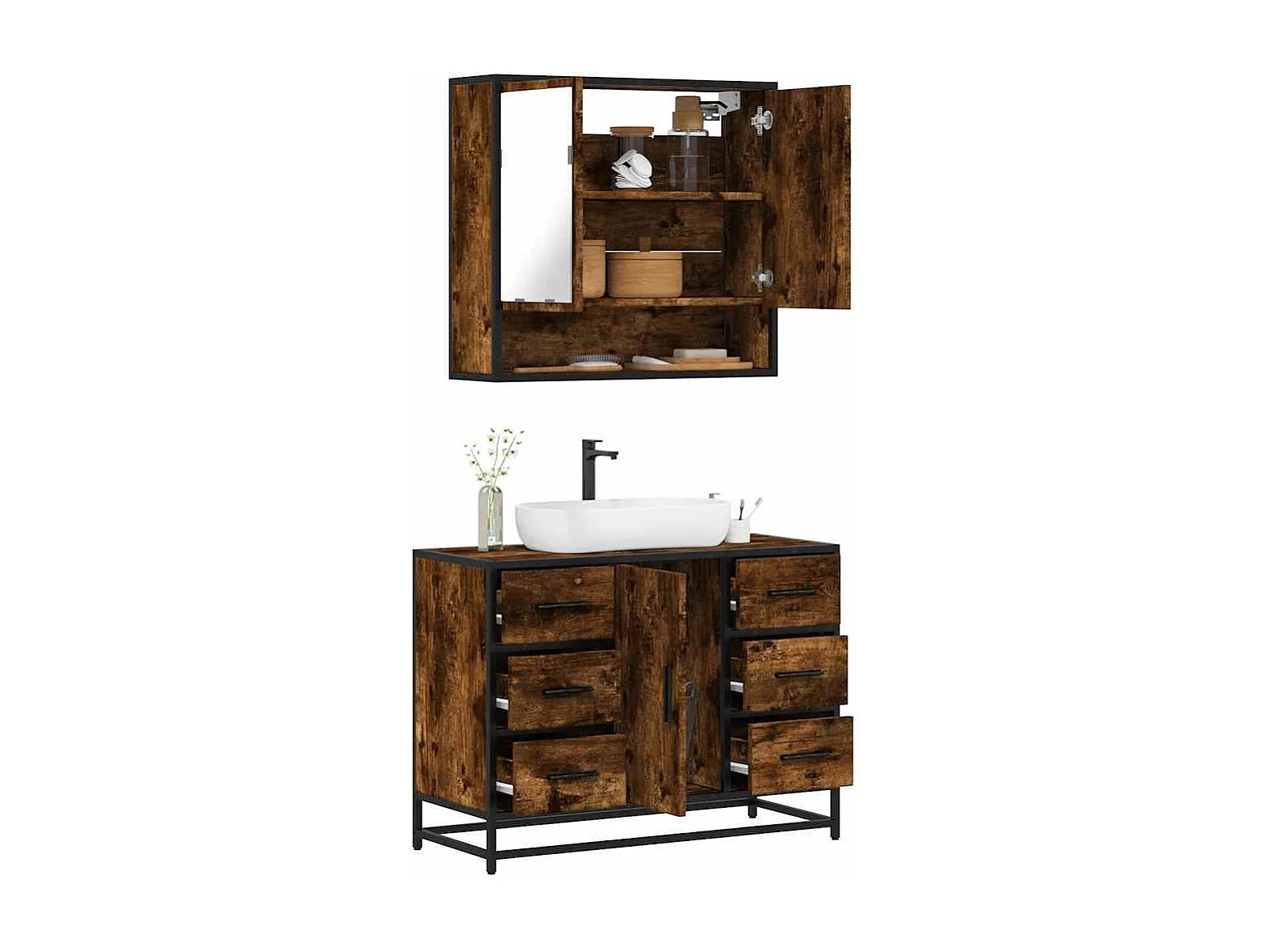 Ensemble de meubles de salle de bain 2 pcs Chêne fumé