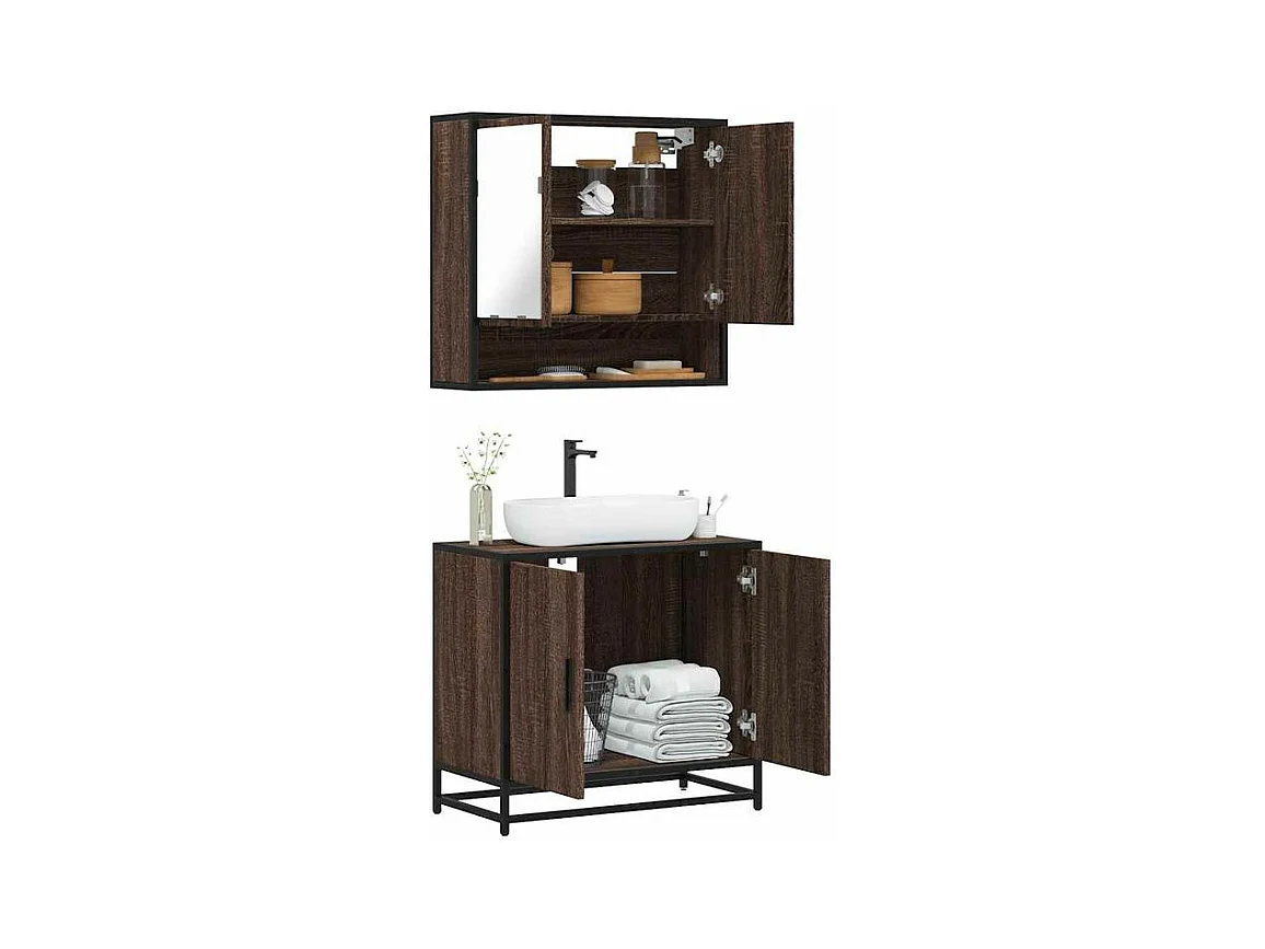 Ensemble de meubles de salle de bain 2 pcs Chêne marron