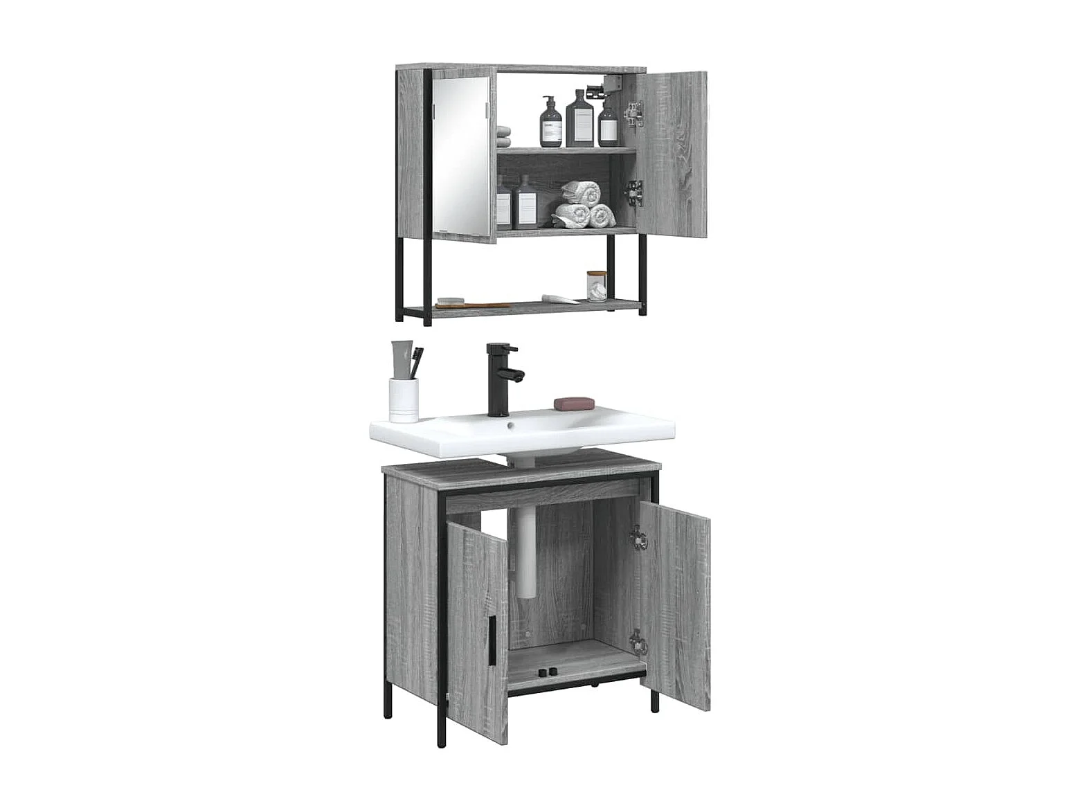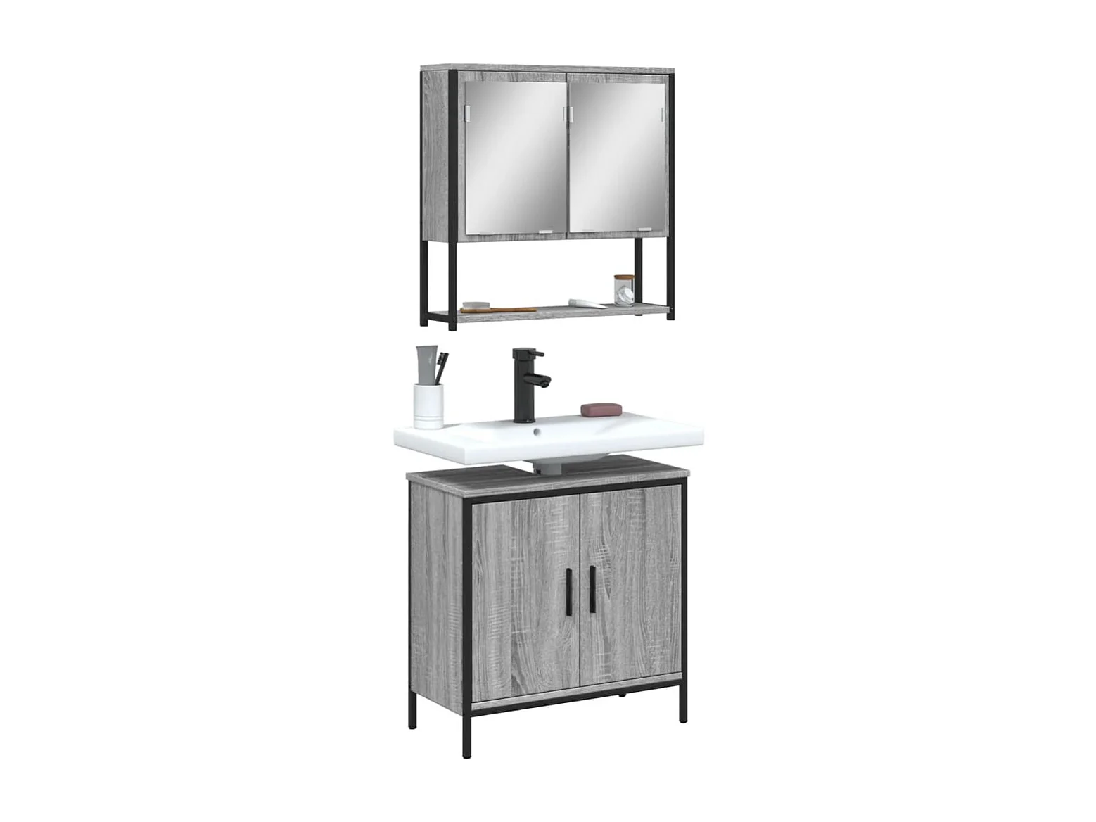 Ensemble de meubles de salle de bain 2 pcs Sonoma gris