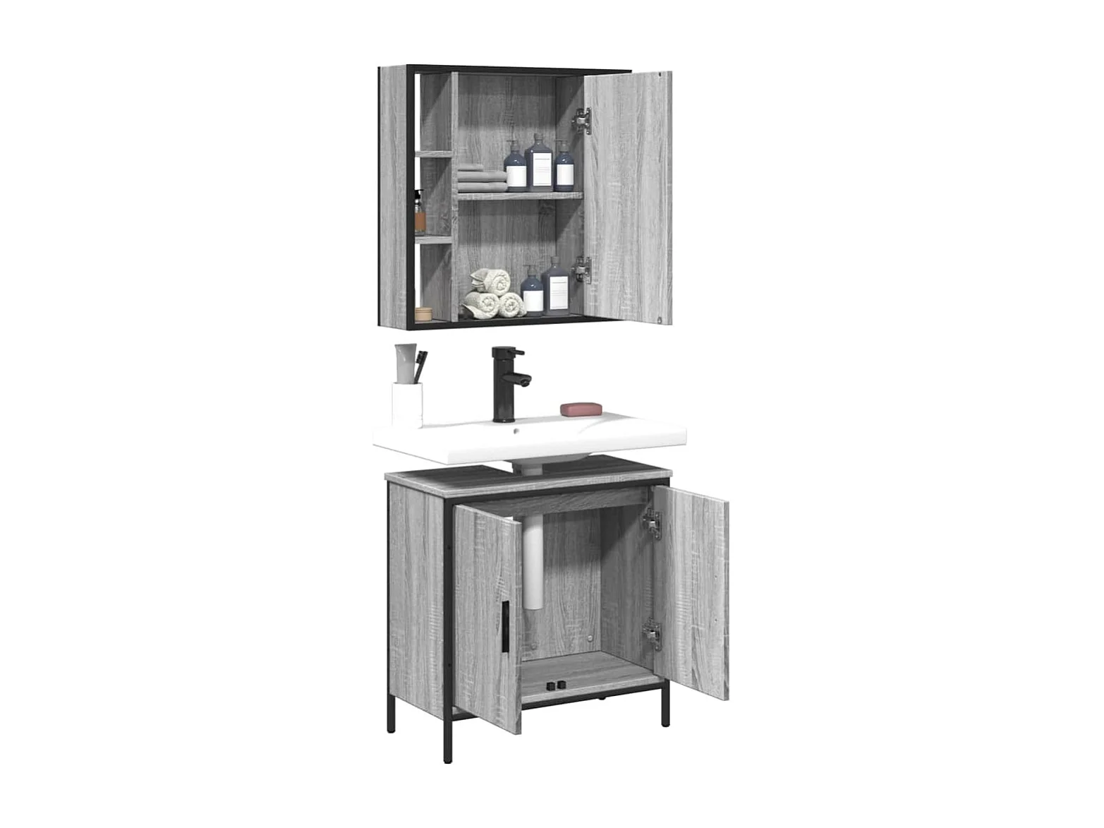 Ensemble de meubles de salle de bain 2 pcs Sonoma gris