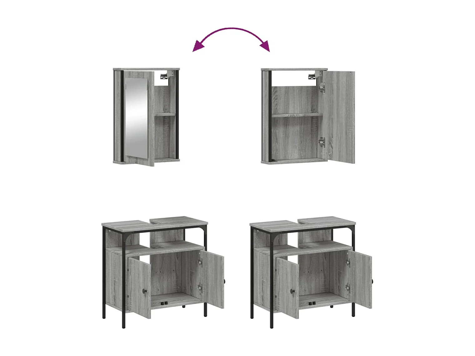 Ensemble de meubles de salle de bain 2 pcs Sonoma gris