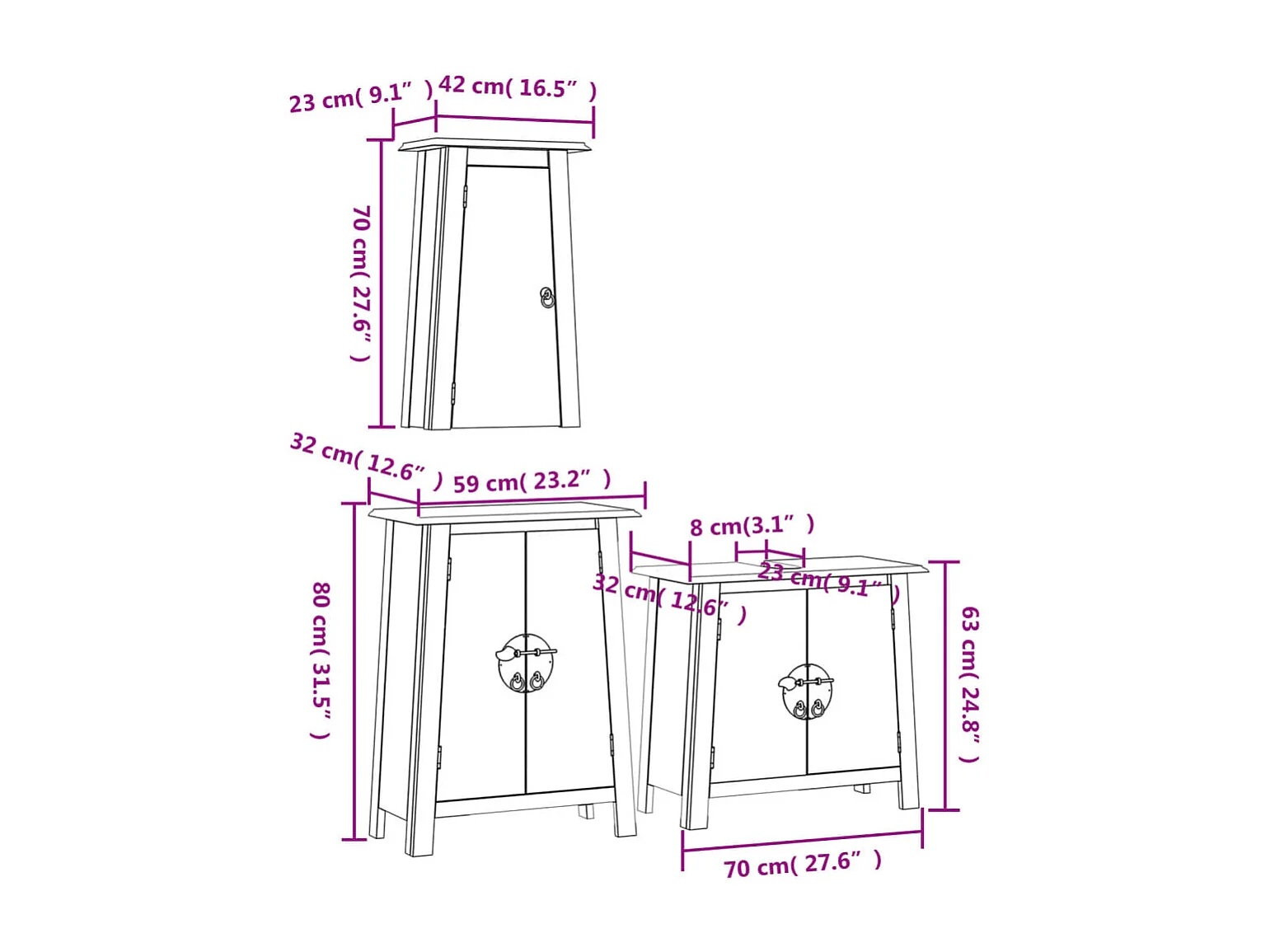 Ensemble de meubles de salle de bain 3 pcs bois de pin massif