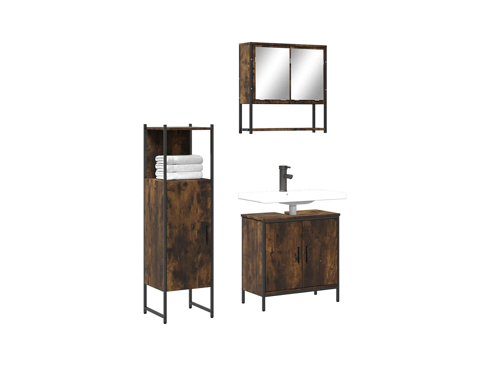 Ensemble de meubles de salle de bain 3 pcs Chêne fumé