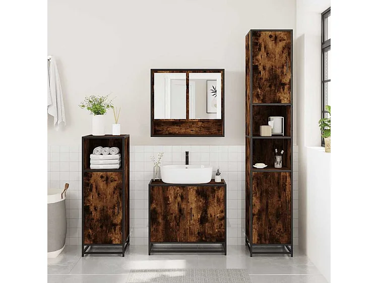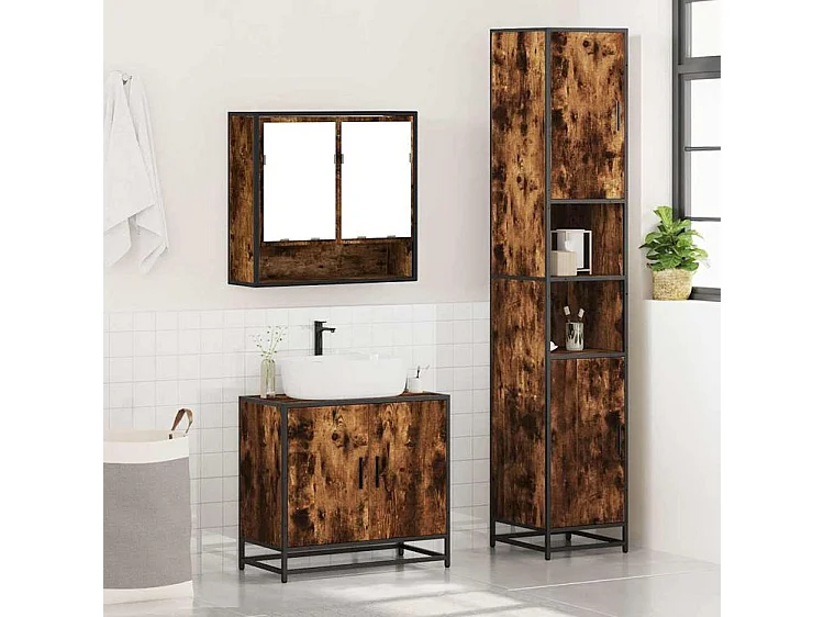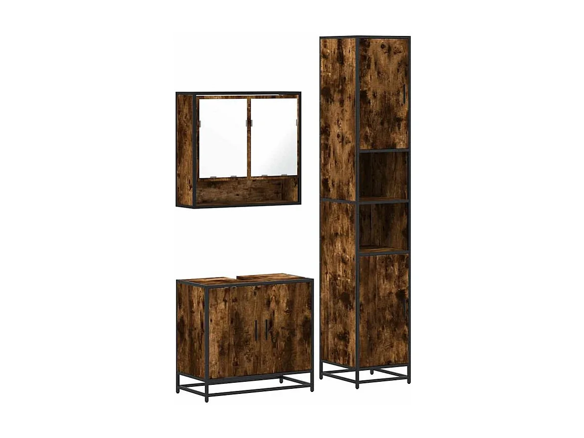 Ensemble de meubles de salle de bain 3 pcs Chêne fumé