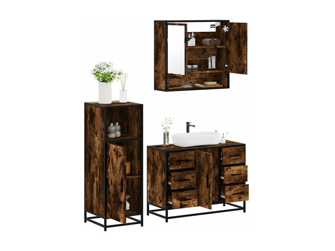 Ensemble de meubles de salle de bain 3 pcs Chêne fumé