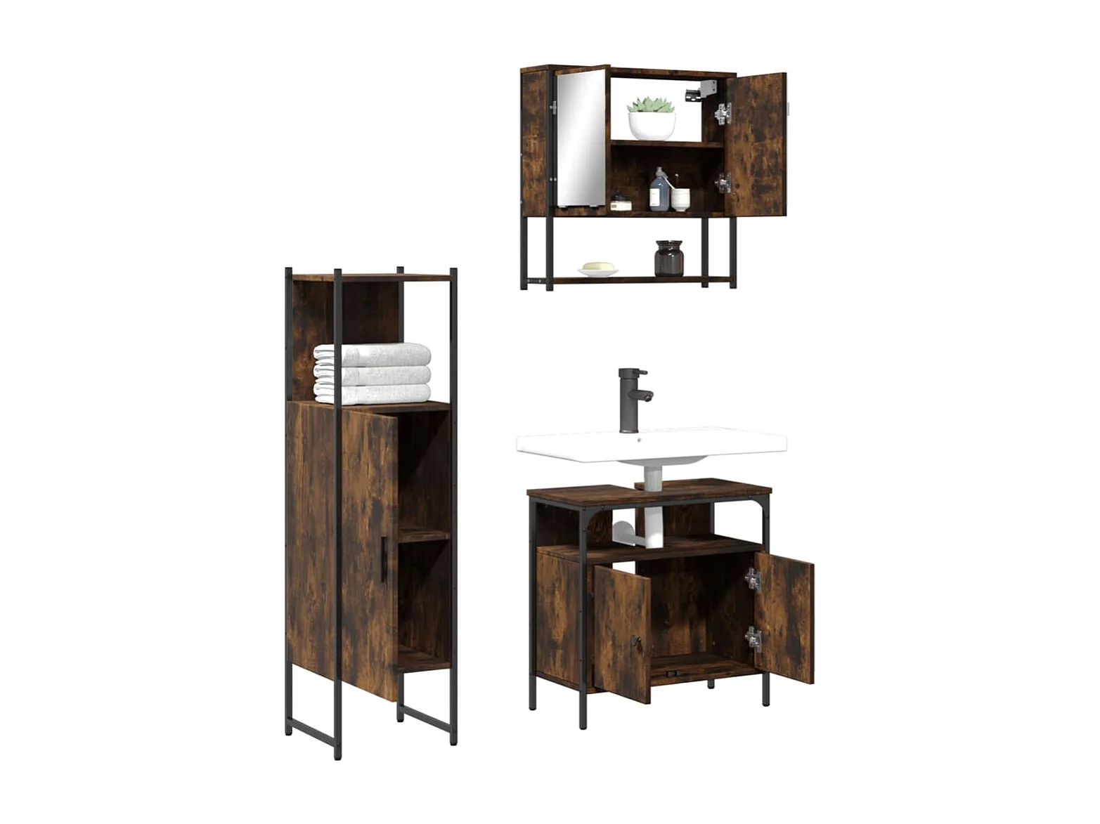 Ensemble de meubles de salle de bain 3 pcs Chêne fumé