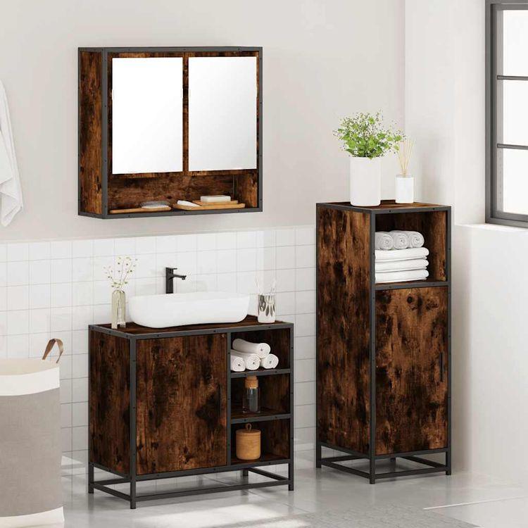 Ensemble de meubles de salle de bain 3 pcs Chêne fumé