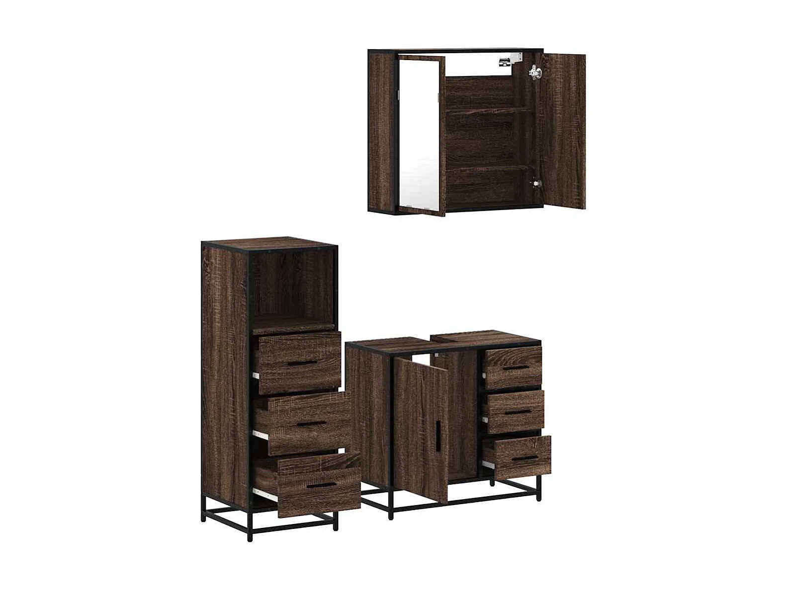 Ensemble de meubles de salle de bain 3 pcs Chêne marron
