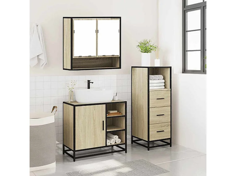 Ensemble de meubles de salle de bain 3 pcs chêne sonoma