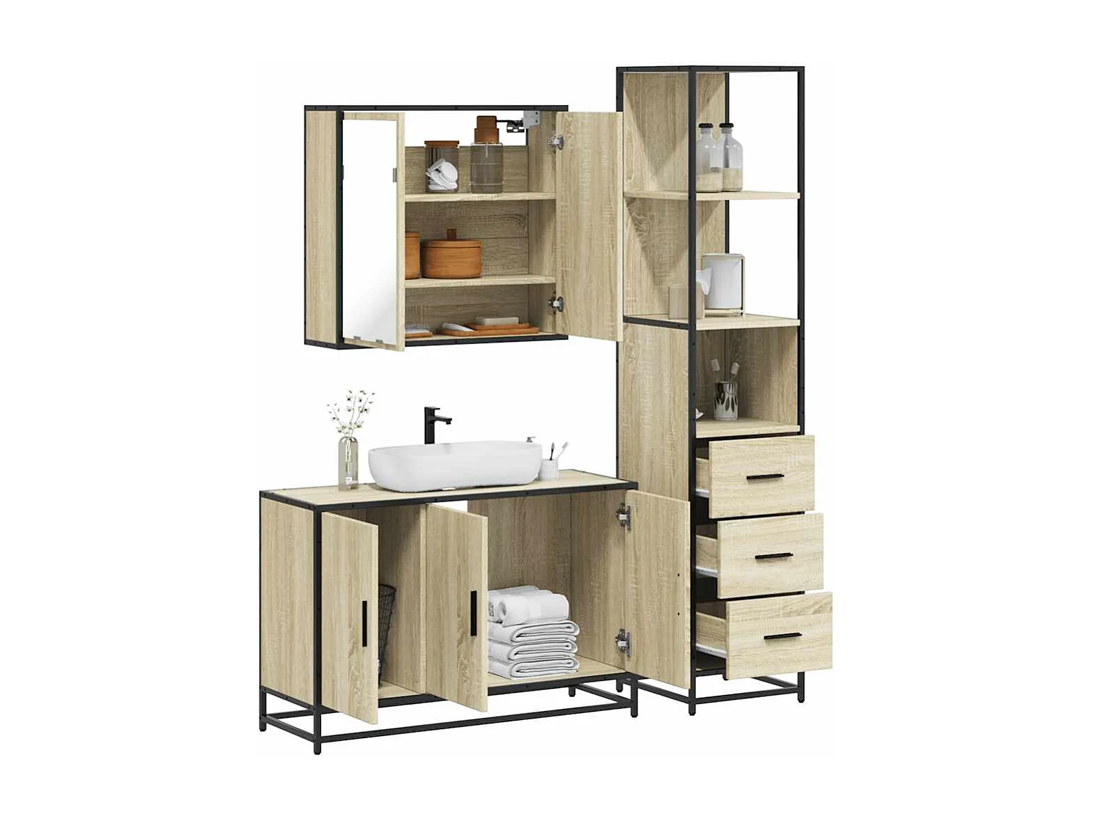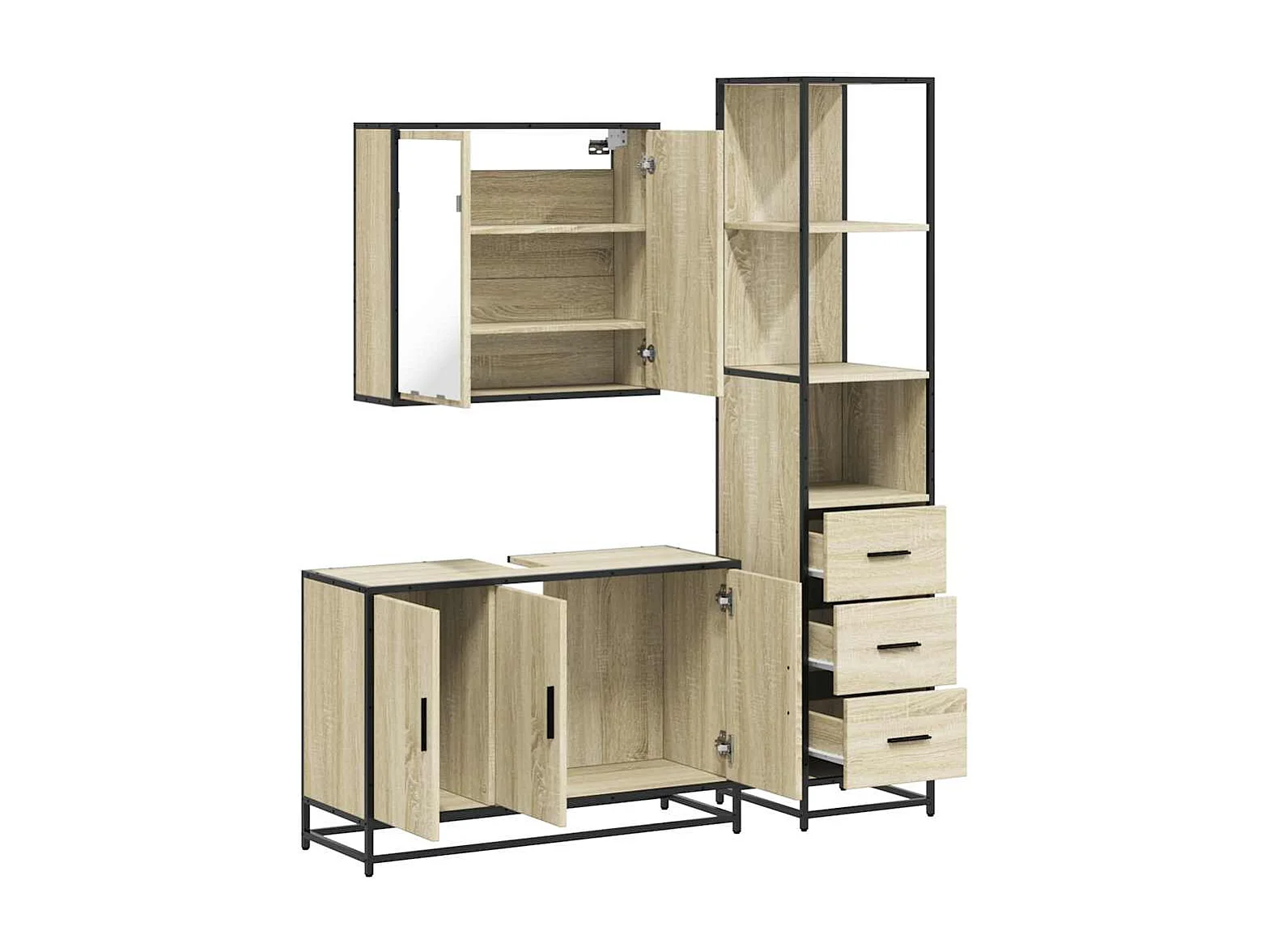 Ensemble de meubles de salle de bain 3 pcs chêne sonoma