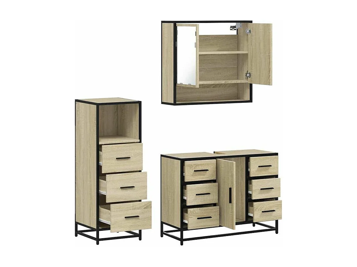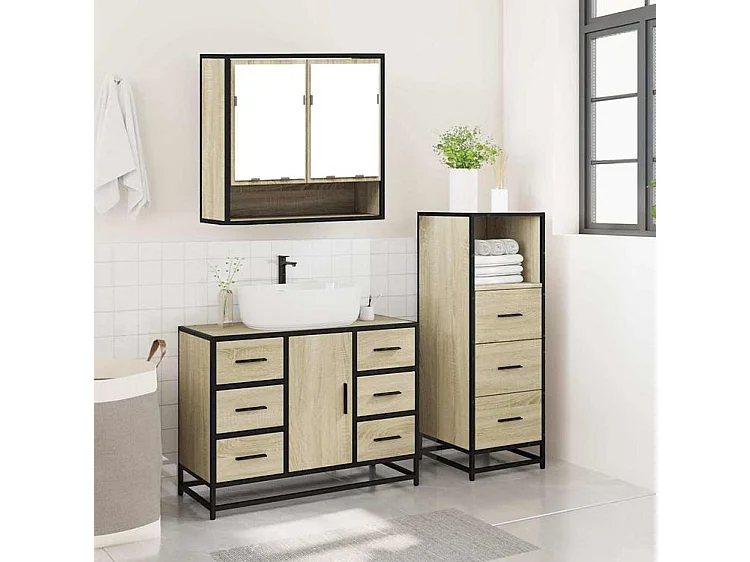 Ensemble de meubles de salle de bain 3 pcs chêne sonoma