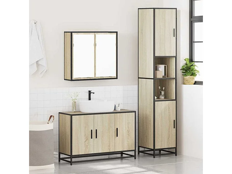 Ensemble de meubles de salle de bain 3 pcs chêne sonoma