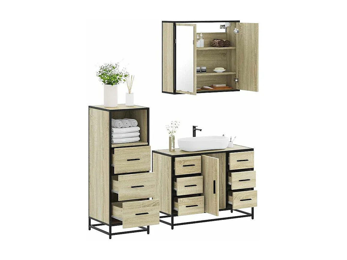 Ensemble de meubles de salle de bain 3 pcs chêne sonoma
