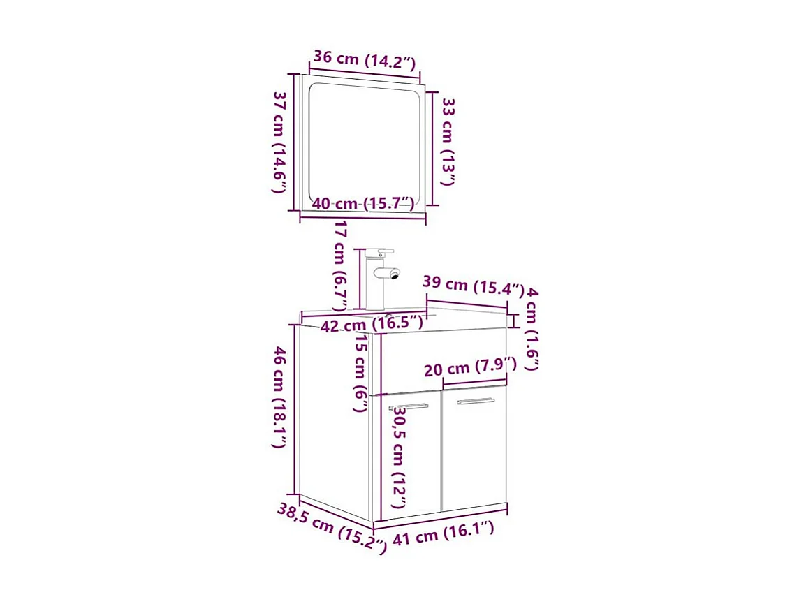 Ensemble de meubles de salle de bain 3 pcs gris béton