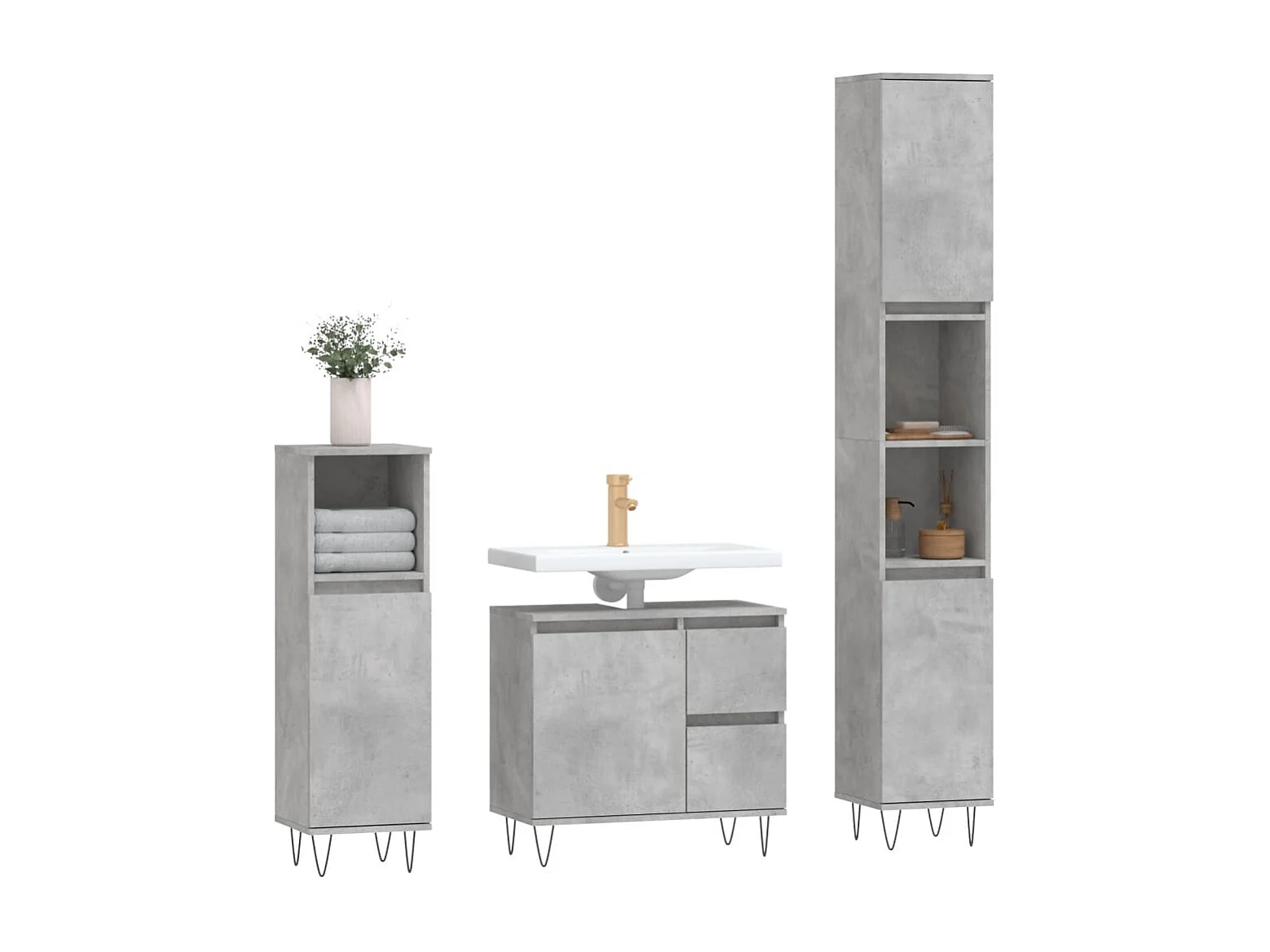 Ensemble de meubles de salle de bain 3 pcs gris béton