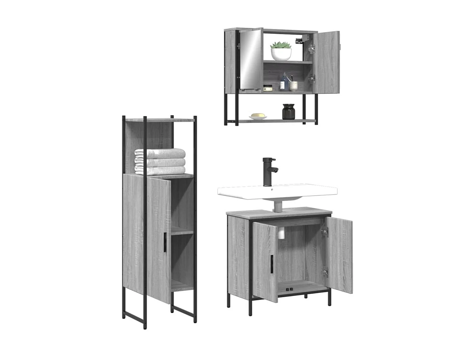 Ensemble de meubles de salle de bain 3 pcs Sonoma gris