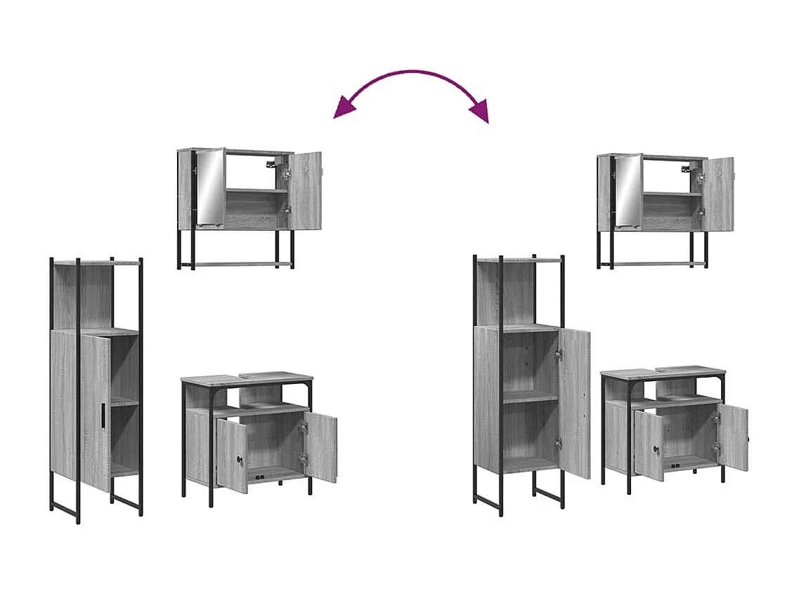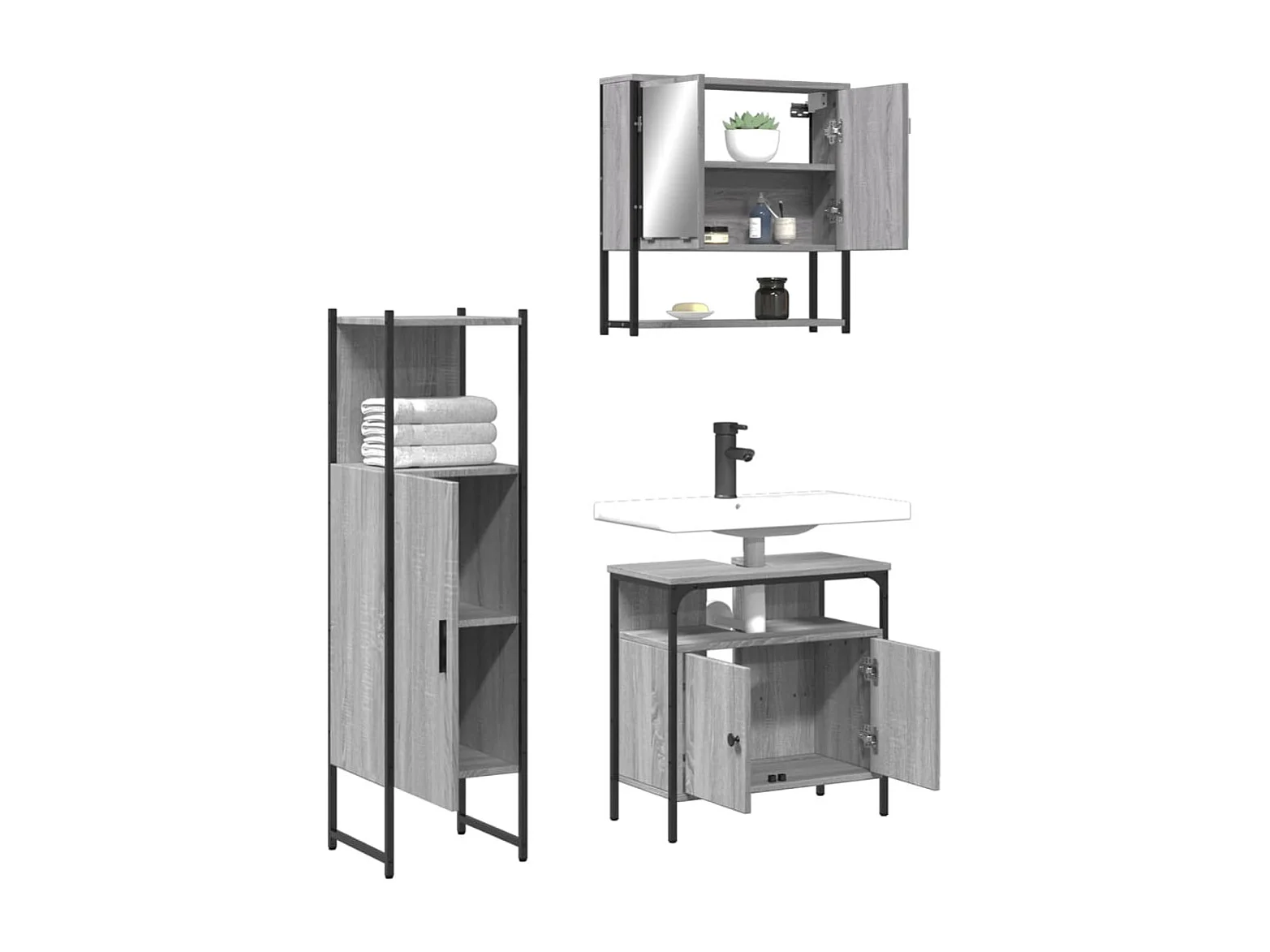 Ensemble de meubles de salle de bain 3 pcs Sonoma gris
