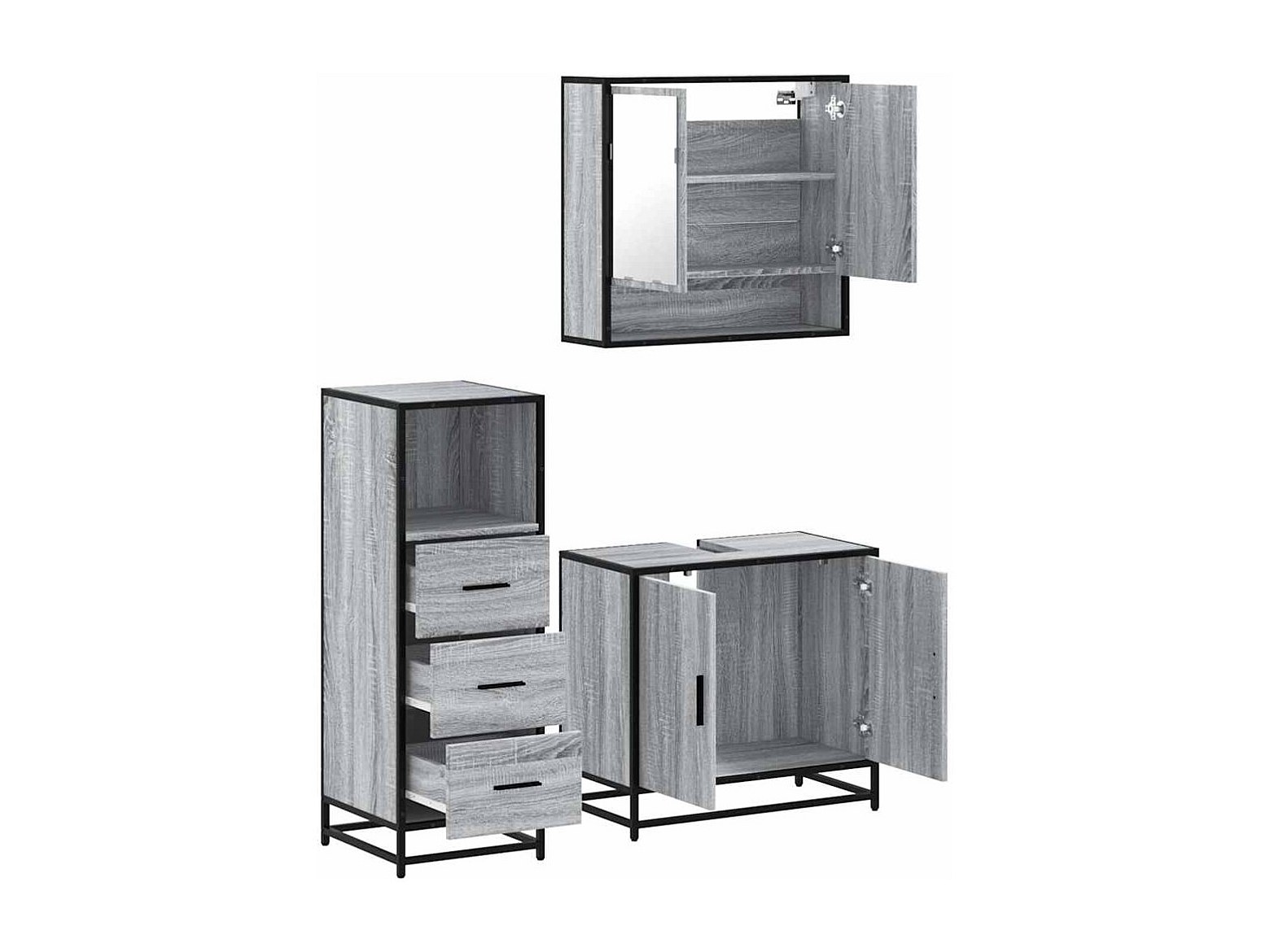 Ensemble de meubles de salle de bain 3 pcs Sonoma gris
