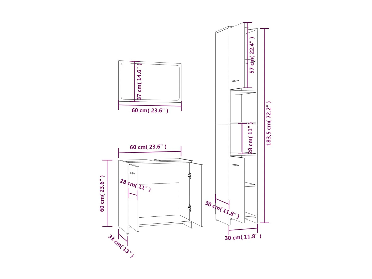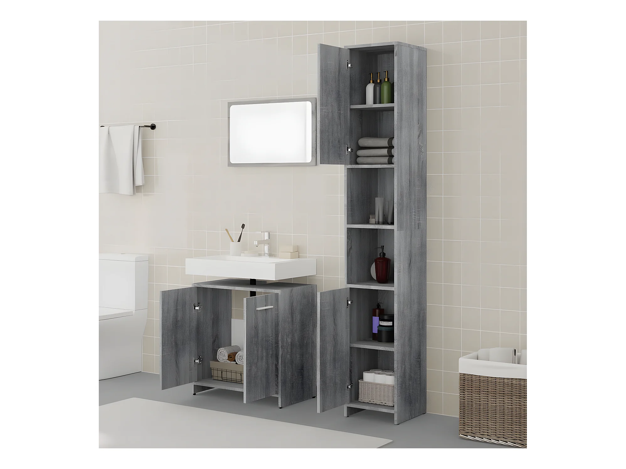 Ensemble de meubles de salle de bain 3 pcs Sonoma gris