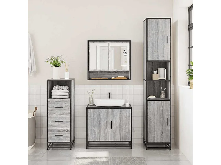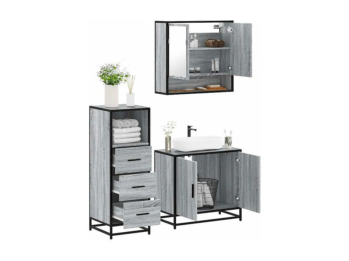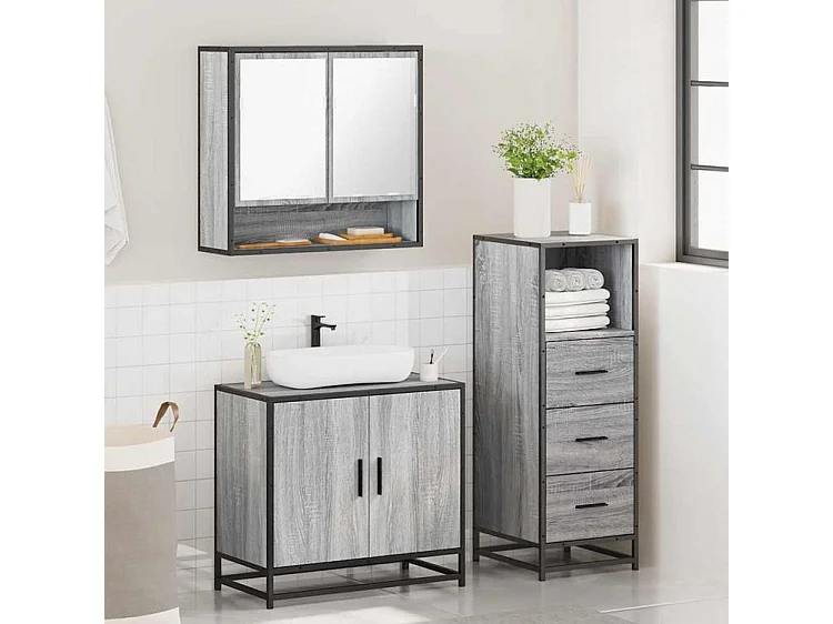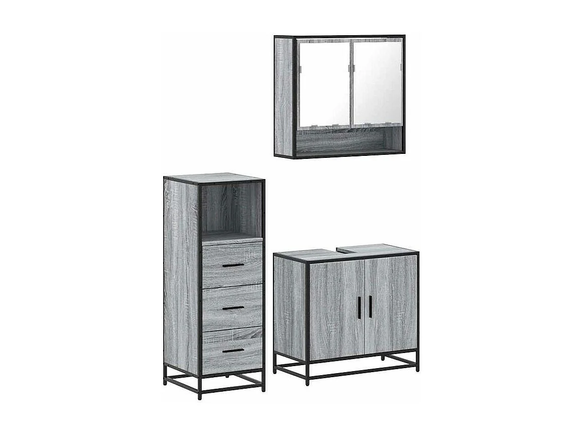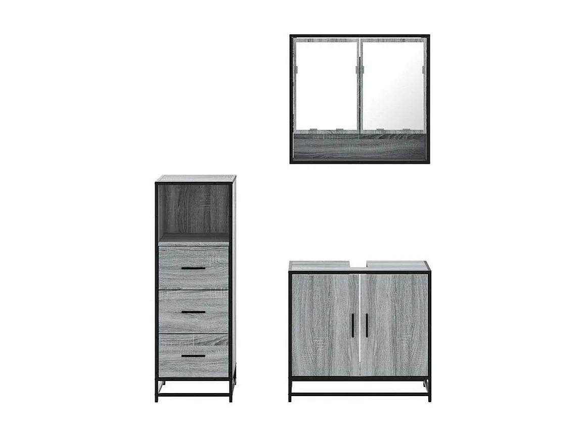 Ensemble de meubles de salle de bain 3 pcs Sonoma gris