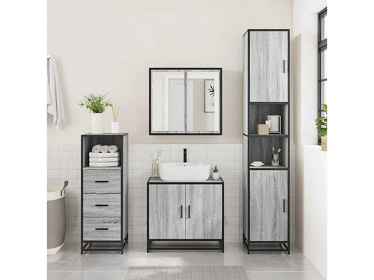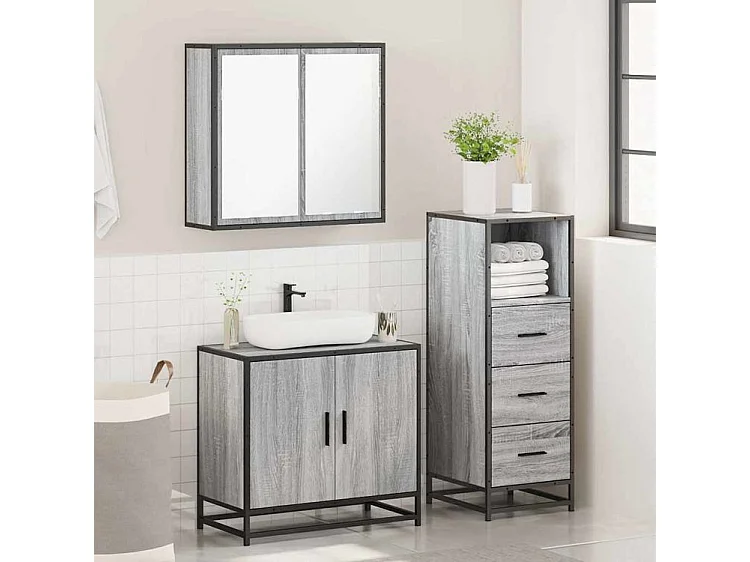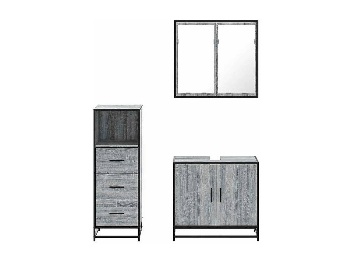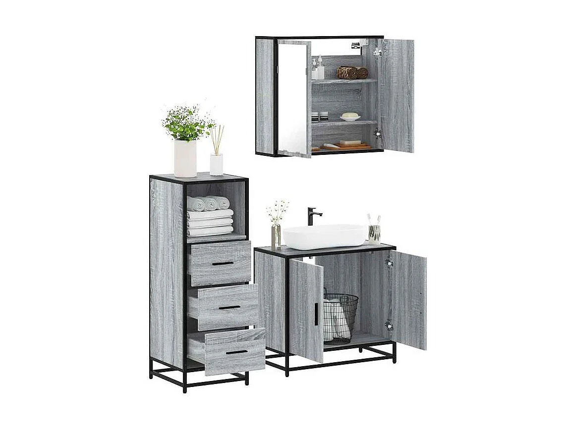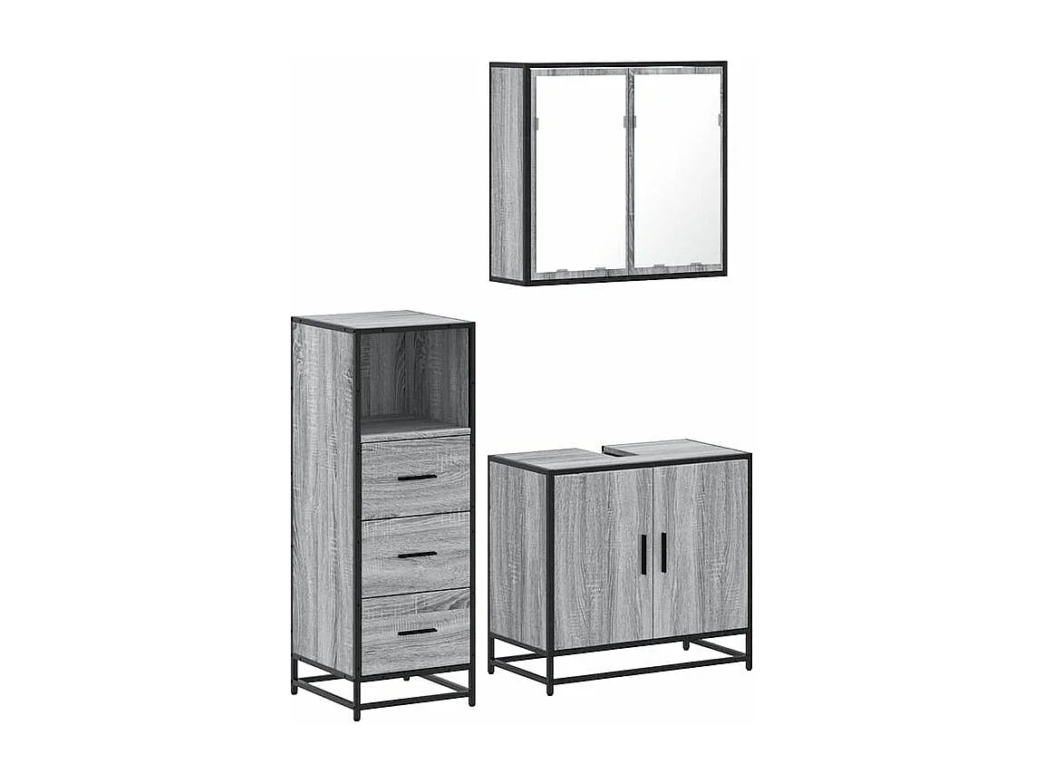 Ensemble de meubles de salle de bain 3 pcs Sonoma gris