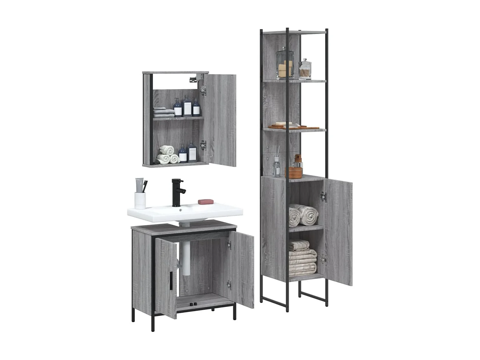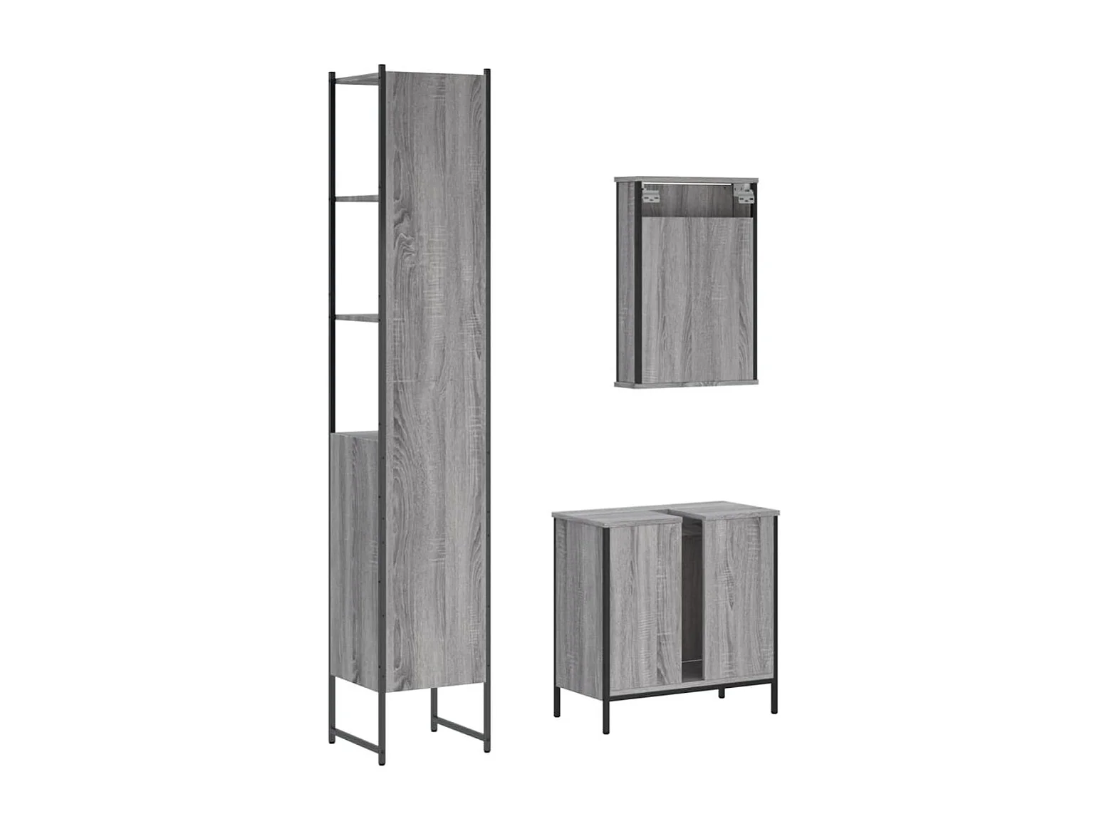 Ensemble de meubles de salle de bain 3 pcs Sonoma gris