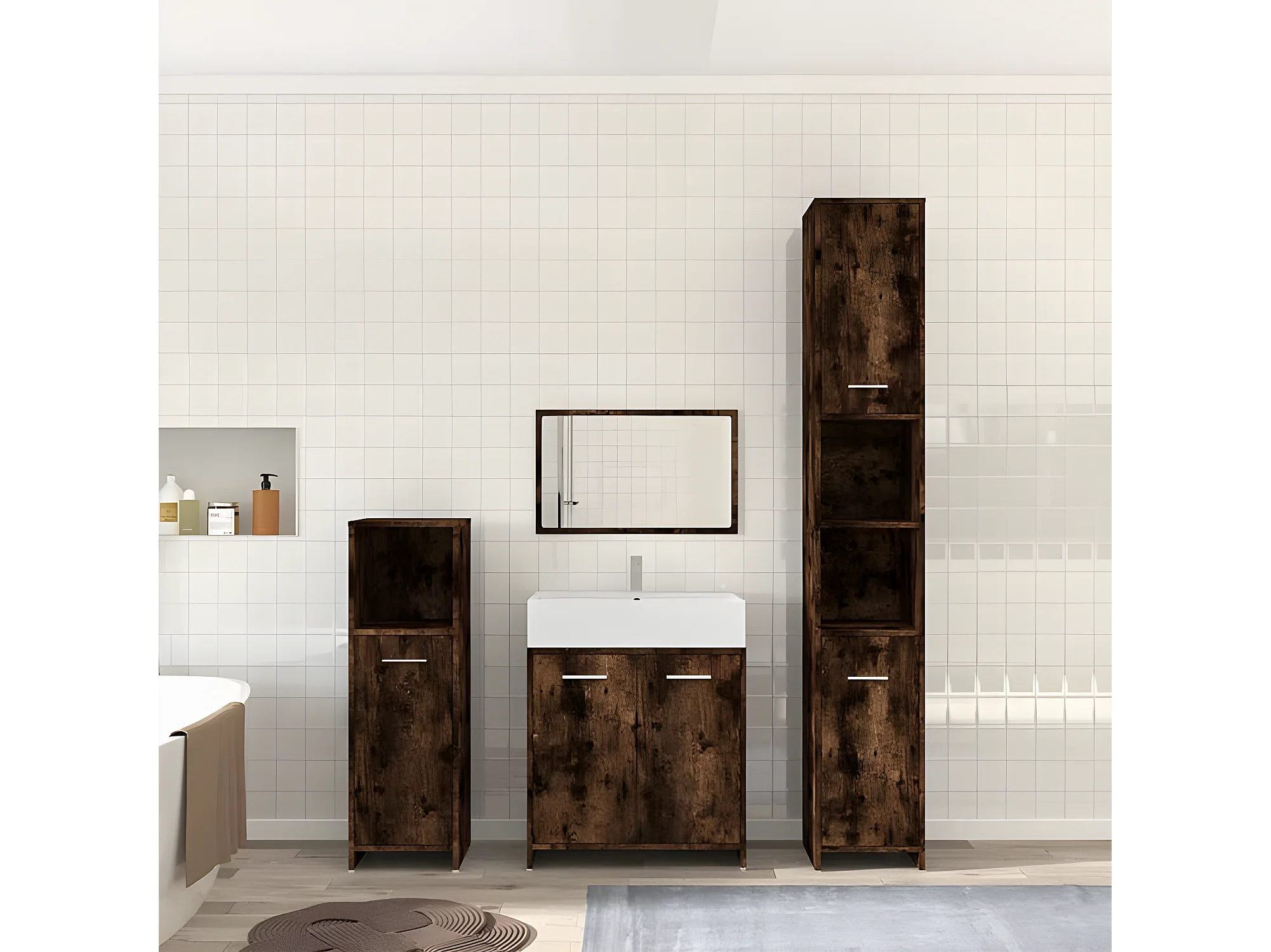 Ensemble de meubles de salle de bain 4 pcs Chêne fumé Bois