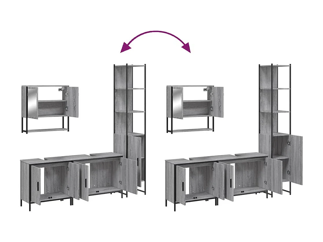 Ensemble de meubles de salle de bain 4 pcs Sonoma gris
